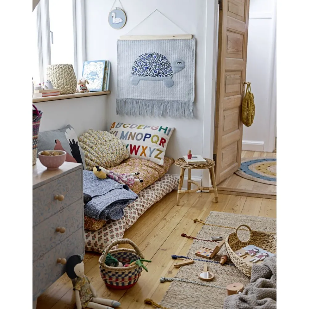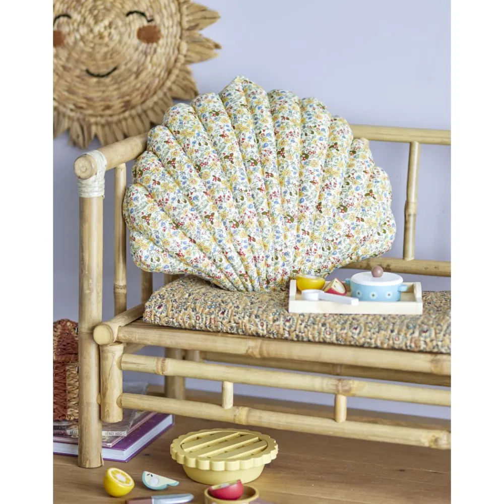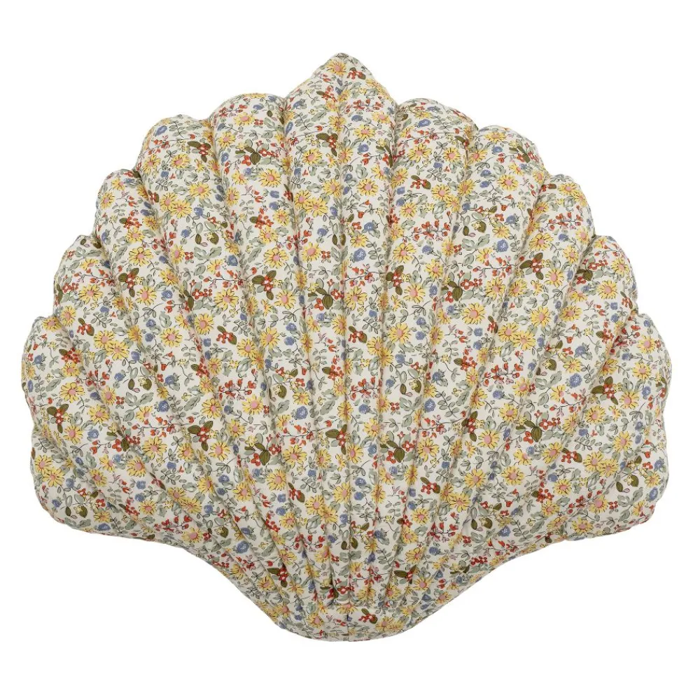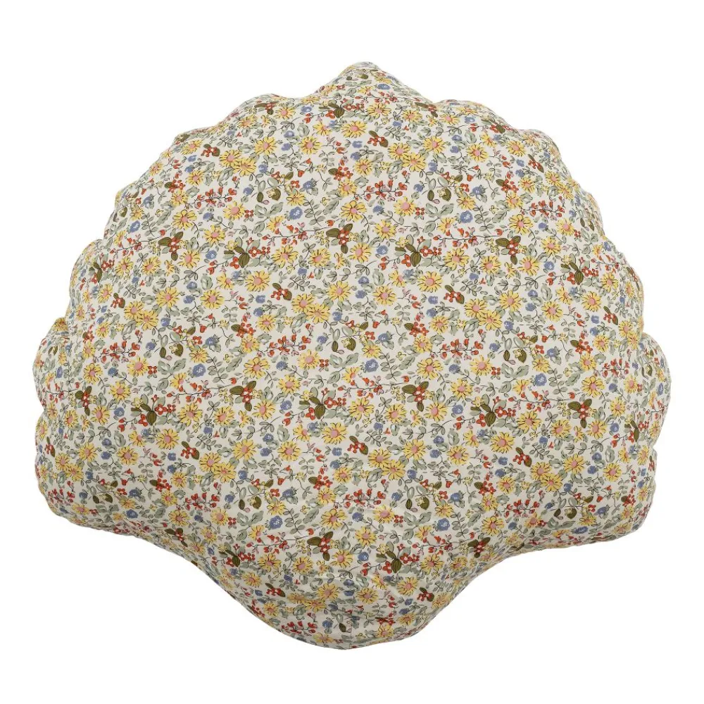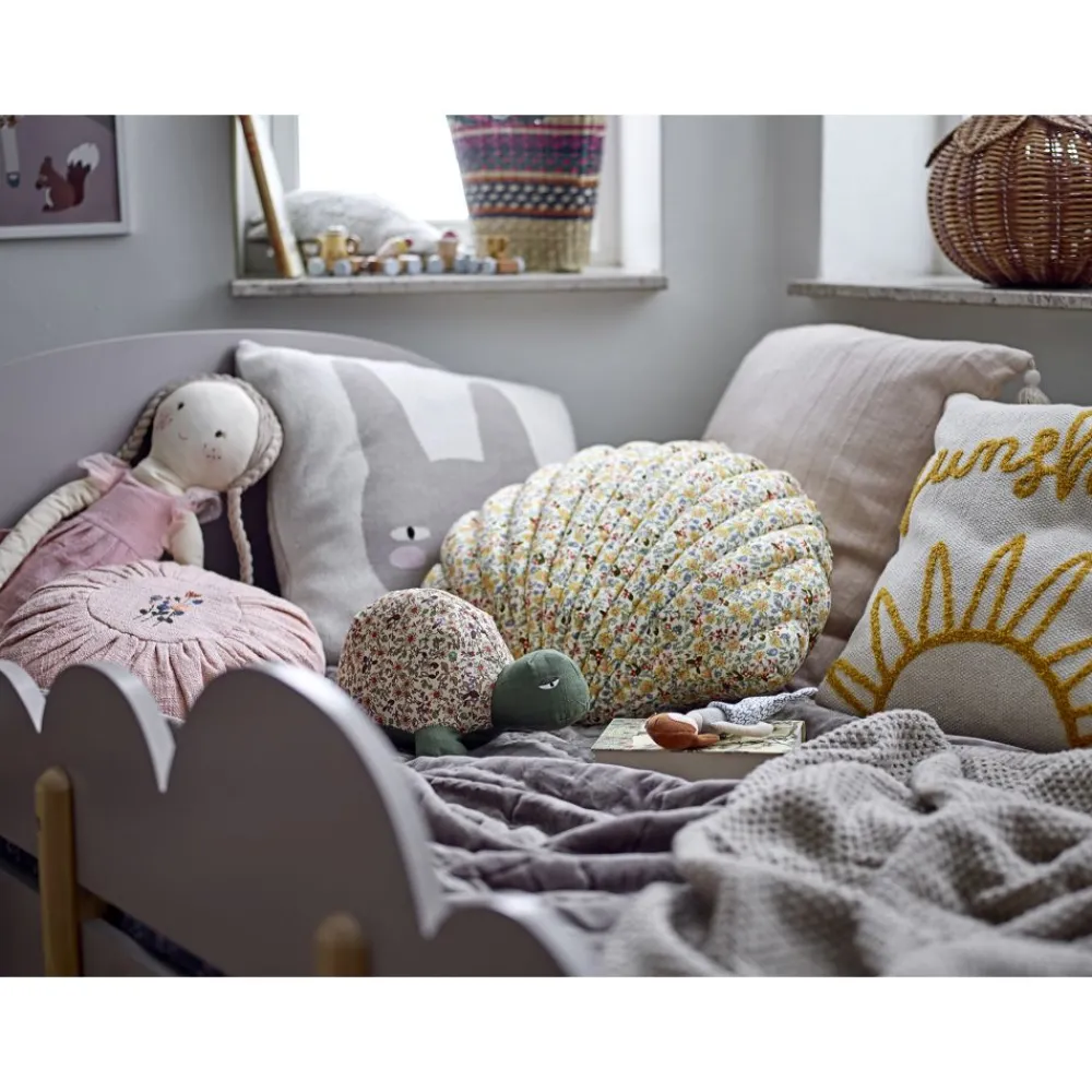 Fro Puten fra Bloomingville MINI er formet som et skall og designet med et søtt mønster som passer inn i de fleste hjem. Bruk puten som ryggstøtte i sengen eller til lek på gulvet.