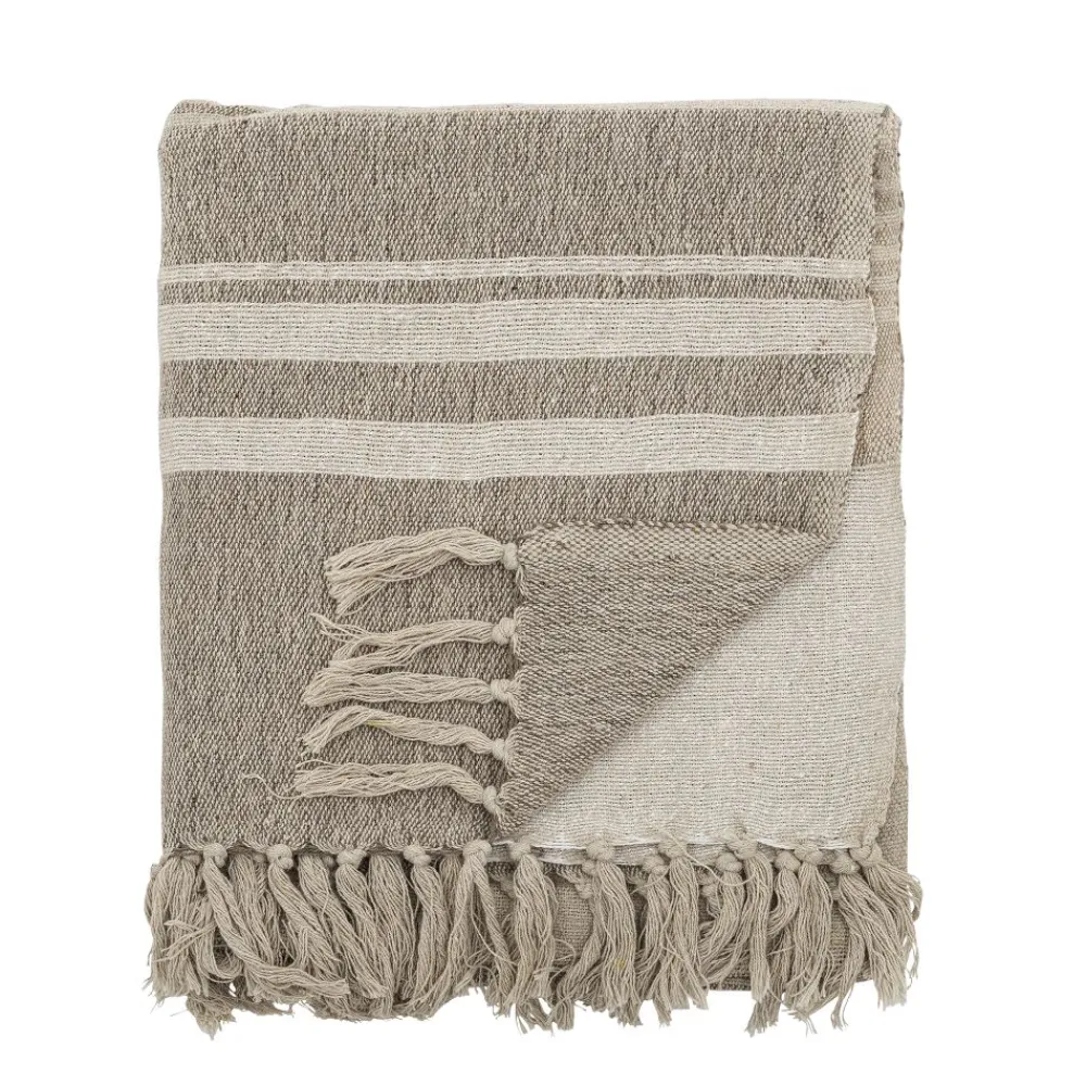 Lugo Teppe fra Bloomingville er vevd av resirkulert bomull, som gir en myk og behagelig tekstur. Teppet er designet med et stilig stripemønster og frynser langs kanten, noe som skaper en varm og innbydende atmosfære. Teppet er ideelt for kjølige kvelder og kan brukes både i sofaen og som et vakkert tillegg til soverommet.