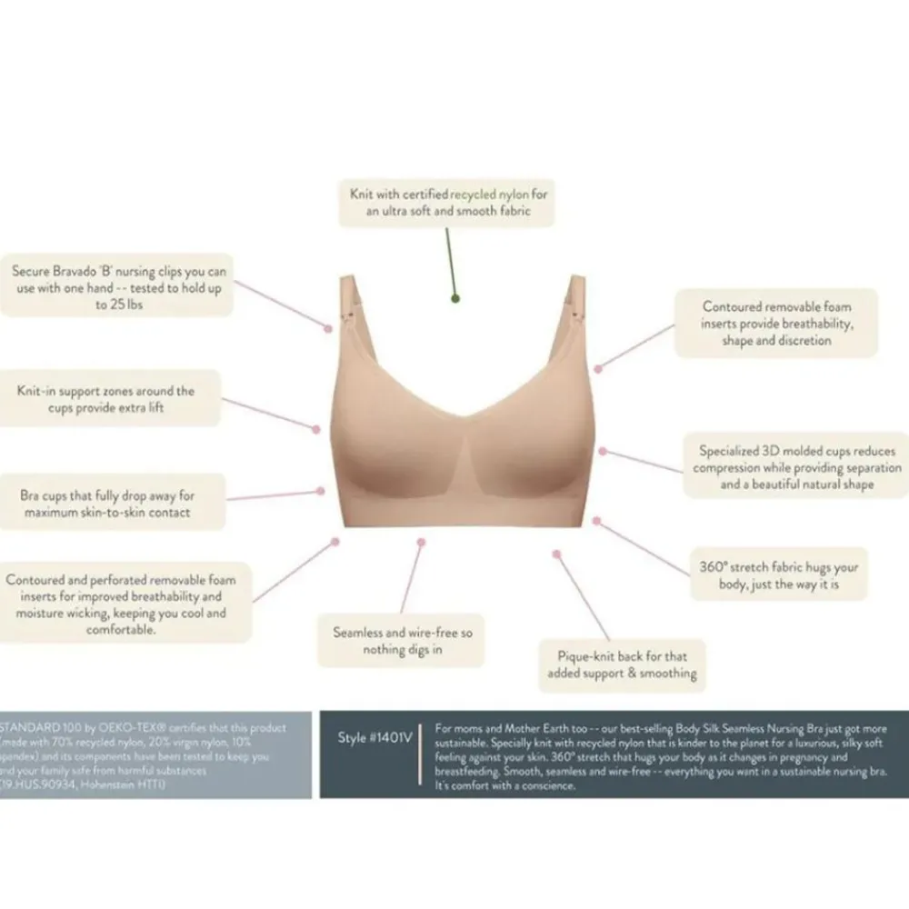 Amme-bh fra Bravado gir god støtte og har en meget god passform. Bravado BH gir den ultimate sømløse, komfortable opplevelsen. Det luksuriøst myke stoffet formes til din skiftende form, slik at du kan bruke den gjennom graviditet og amming. Bred og elastisk ryggstøtte.