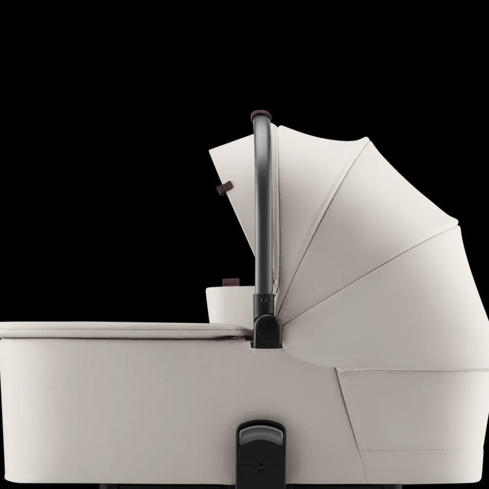 Med RIOs høyt monterte og mykt polstrede bærebag ligger babyen flatt og kjølig – perfekt for både siesta og trilletur. Den store kalesjen og panoramavinduer gir god ventilasjon på varme dager. Når barnet sover, løfter du enkelt av bagen med én hånd – og har den andre fri til alt annet.