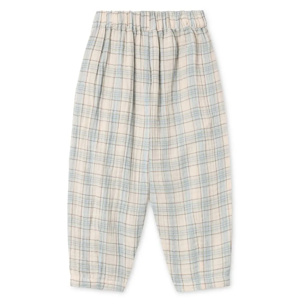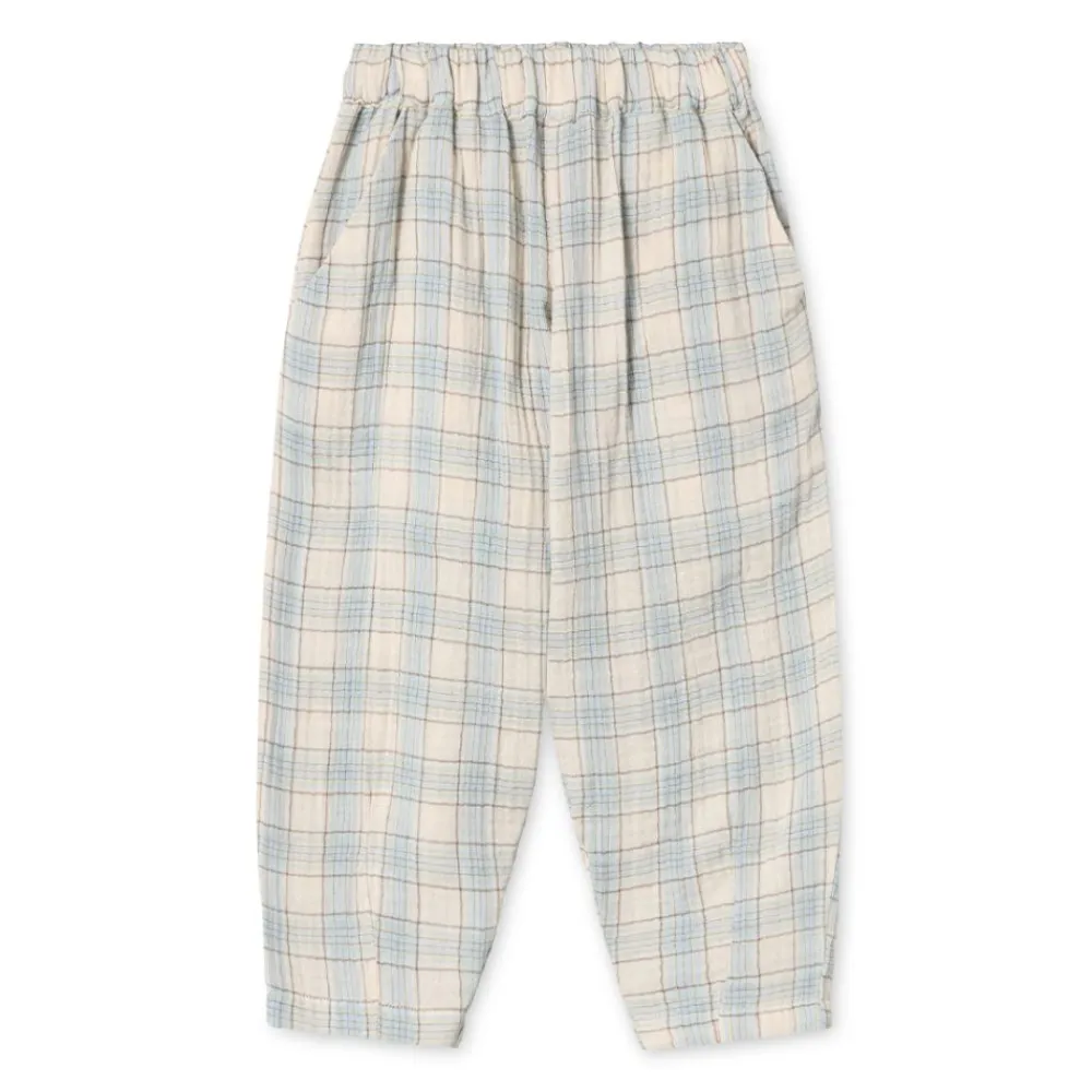 En rutete bukse i økologisk bomull i myk, lettvevd kvalitet som gir en behagelig passform, og den elastiske midjen gjør den enkel å ta av og på. Med praktiske lommer og en avslappet silhuett er dette et plagg du kan bruke til både hverdagslige ærender og koselige utflukter. Samtidig kan du kle den opp med en pen bluse og sandaler for en mer pyntet stil.