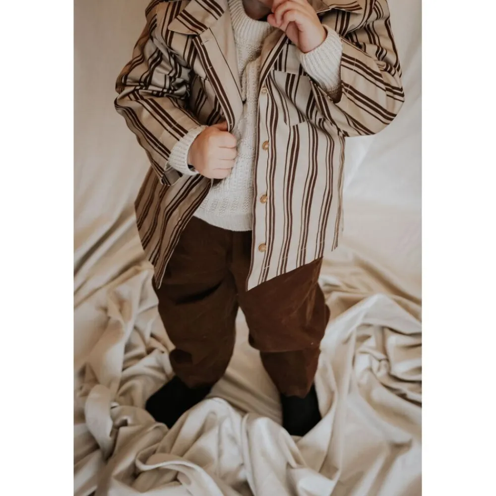 En myk bomullsfløyel gir en fin tekstur og er komfortabel å ha på. Sidelommene er praktiske for å oppbevare småting, og strikken i midjen gir en god passform og fleksibilitet.
