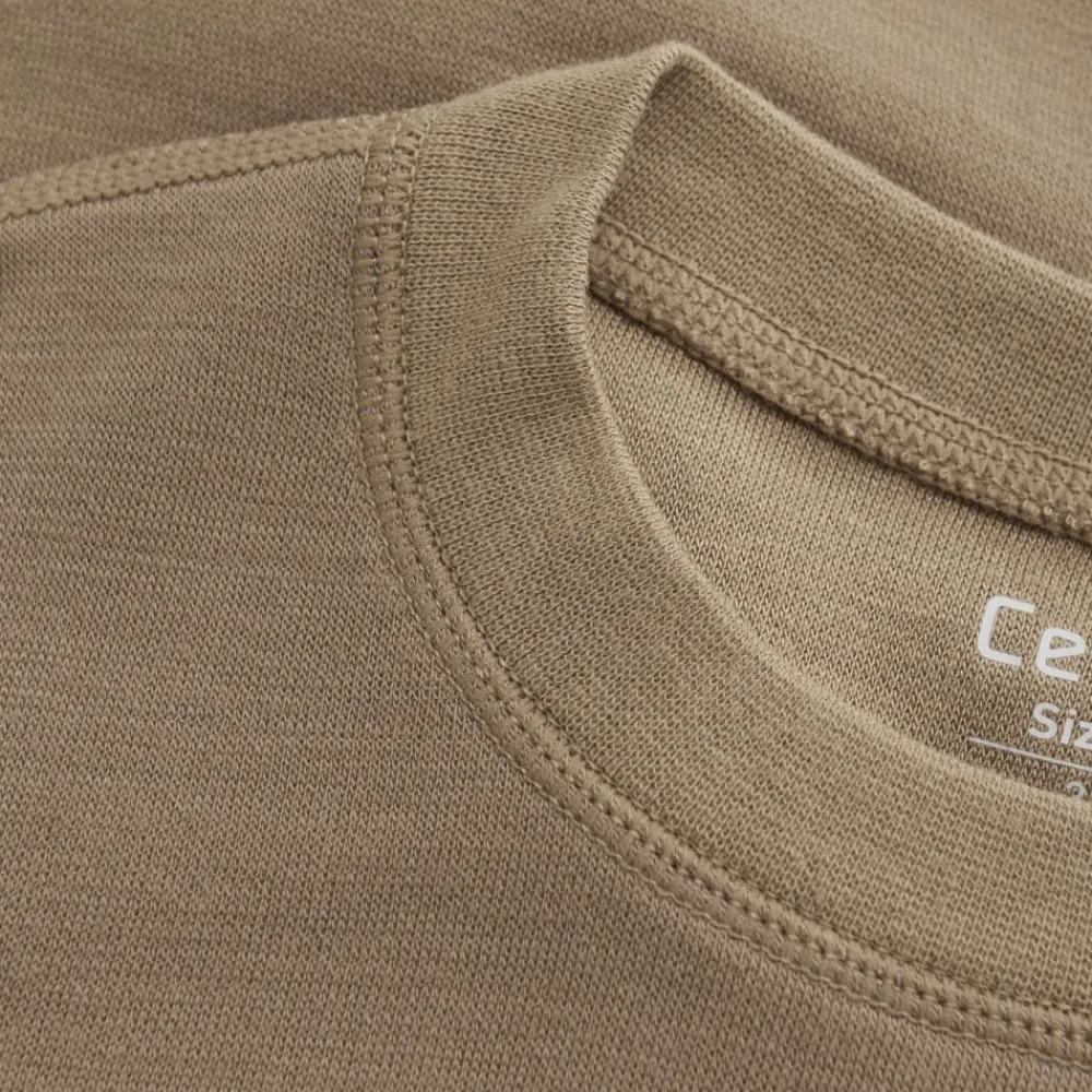 Celavi-genseren er laget av en blanding av merinoull og bambusviskose. Denne kombinasjonen av materialer skaper en myk og luksuriøs følelse, samtidig som den gir varme- og fukttransportegenskaper. Merinoullen tilfører isolasjon og pusteevne, mens bambusviskosen legger til en silkeaktig tekstur og hjelper til med å regulere kroppstemperaturen.