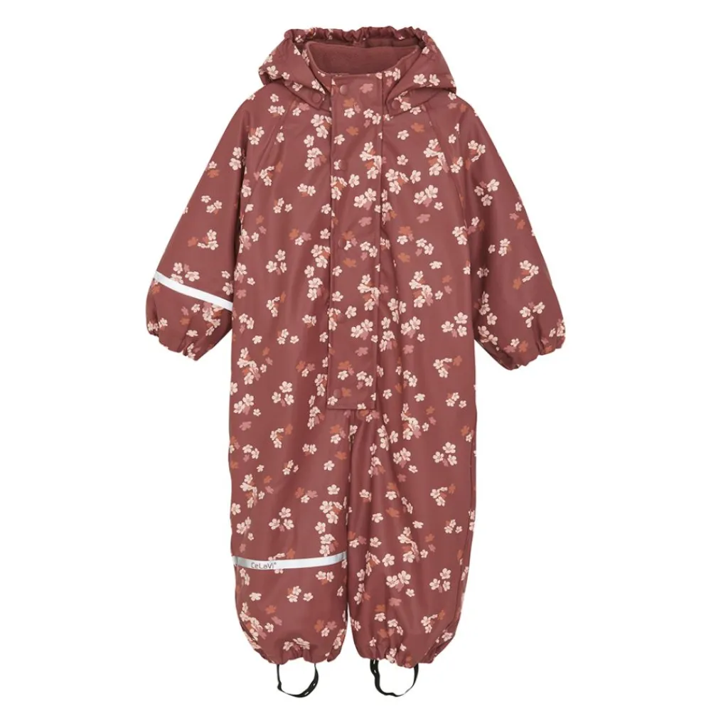 Praktisk og fin regndress med fleecefôr inni. Regndressen er i slitesterk kvalitet og helt vanntett med vannsøyle på 10.000 mm. Refleks på ermet og beinet. Regndressen har praktiske funksjoner som avtagbar hette med trykknapper, elastikk ved håndledd og ankler samt justerbare støvelstropper. CeLaVi-logo på brystet og hetten. Endene ved anklene og håndleddene har PU inni, som holder regn og vind ute.
