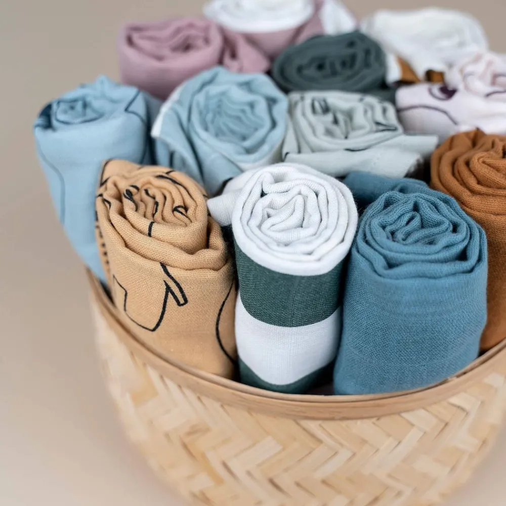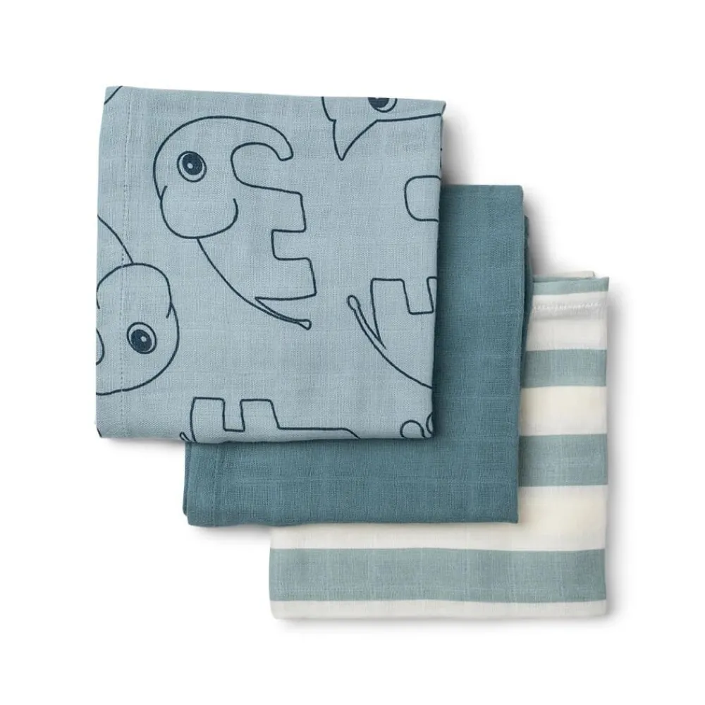 De doble musselinklutene er komfortable, pustende og praktiske. Når de vaskes vil de mykne enda mer. De multifunksjonelle klutene er et baby-must-have for alle nybakte foreldre. De er perfekte når det er tid for en rap etter mating, når de minste begynner å spise på egenhånd eller som underlag ved bleieskift.