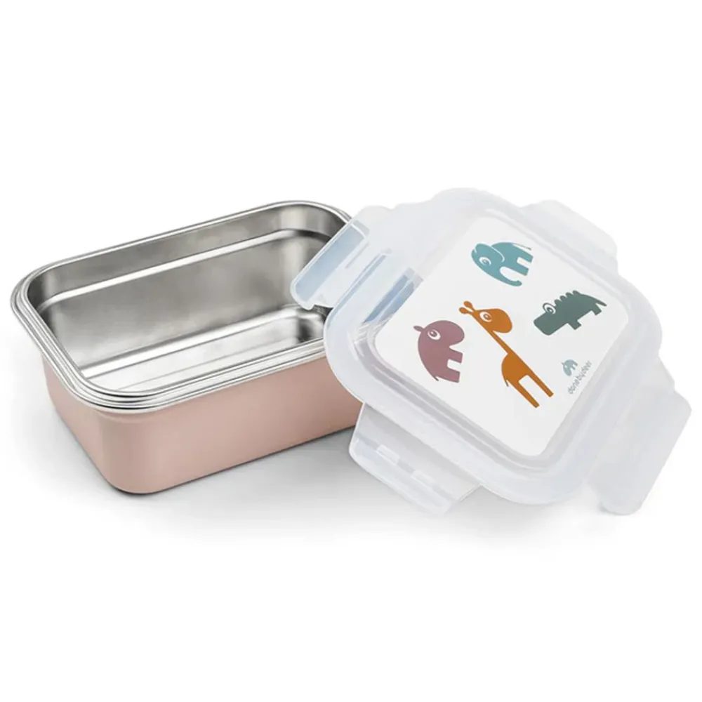 Matboksen i metall fra Done By Deer er et must når du er på farten. Metallboksen er perfekt til din barnets lunsj, og plastlokket lukkes tett på matboksen i rustfritt stål. Matboksen i metall er laget av kvalitetsstål – 18/8 rustfritt stål – som gjør matboksen svært slitesterk og langvarig. Det er ingen belegg på innsiden av matboksen og den avgir ingen form for smak eller kjemikalier.