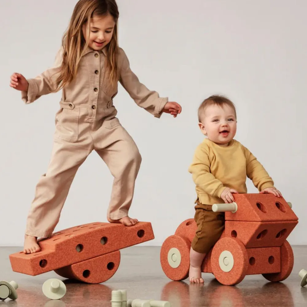 Bygg en gåstol for den lille mens den eldste ruller avgårde på tur, eller bygg komplekse kreasjoner for å utfordre din indre ingeniør – som et lekekjøkken eller en innendørs sklie. Moroa begynner i byggeprosessen og fortsetter gjennom år med aktiv lek.