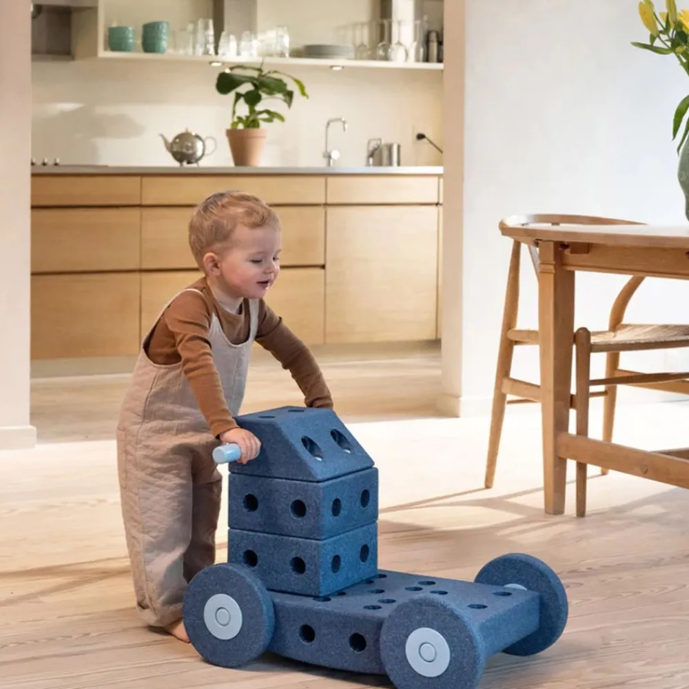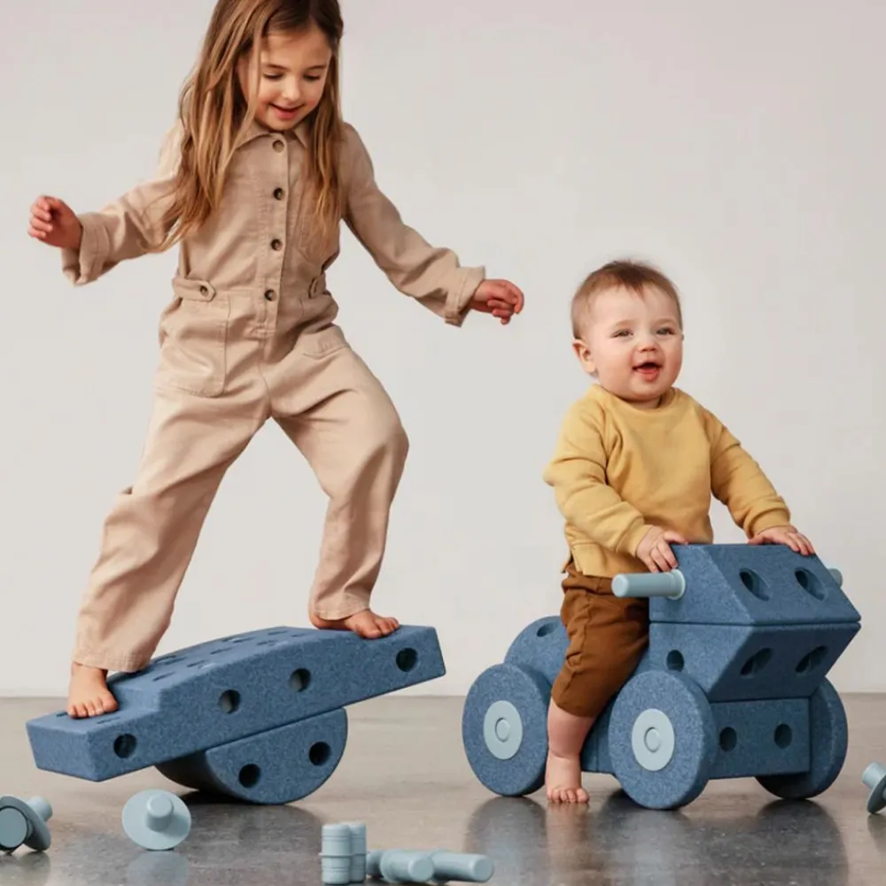 Bygg en gåstol for den lille mens den eldste ruller avgårde på tur, eller bygg komplekse kreasjoner for å utfordre din indre ingeniør – som et lekekjøkken eller en innendørs sklie. Moroa begynner i byggeprosessen og fortsetter gjennom år med aktiv lek.