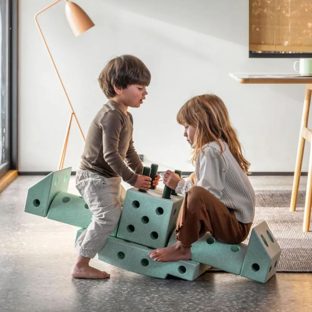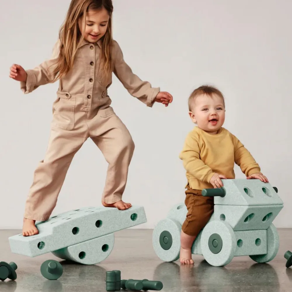Bygg en gåstol for den lille mens den eldste ruller avgårde på tur, eller bygg komplekse kreasjoner for å utfordre din indre ingeniør – som et lekekjøkken eller en innendørs sklie. Moroa begynner i byggeprosessen og fortsetter gjennom år med aktiv lek.
