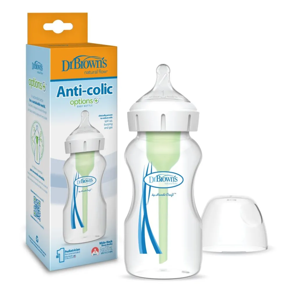 Dr. Brown’s Options+ tåteflaske Wide-Neck har et fullventilerte systemet som fjerner de vanligste årsakene til kolikk. Den vide åpningen gjør det enkelt å fylle og rengjøre flasken. Flaskesmokken er i myk silikon og er utformet for å ligne mest mulig på mors bryst.