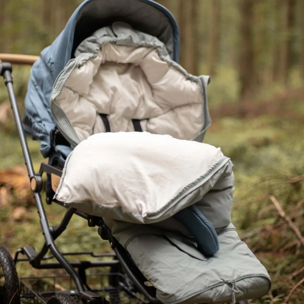 Fra Grandma har Easygrow videreført muligheten til å zippe av fronten helt med to glidelåser, en på hver side. Dette er spesielt praktisk når det blir varmt, eller når dere for eksempel triller inn på et kjøpesenter. Easygrow har også beholdt den populære funksjonen der dundynen kan tas ut, slik at posen kan brukes året rundt. Uten dundynen passer posen perfekt for mildere vår- og høstdager, mens med dundynen gir den ekstra varme på vinteren.