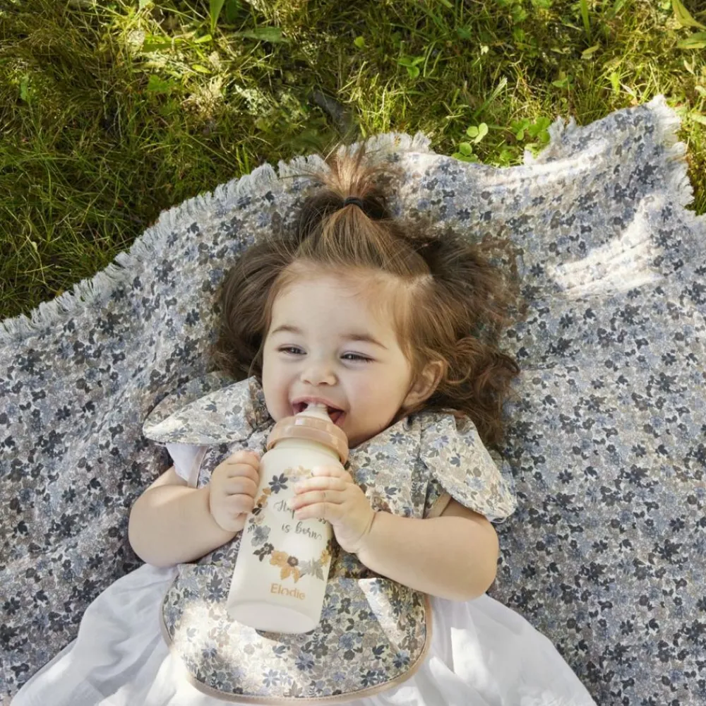 Denne vakre tåteflasken fra Elodie kombinerer funksjonalitet, sikkerhet og design i én og samme flaske. Laget av temperaturbestandig borosilikatglass med et praktisk silikonhylster for bedre grep og ekstra beskyttelse. Et trygt valg som tåler både kokende vann og frysetemperaturer – helt uten skadelige stoffer.