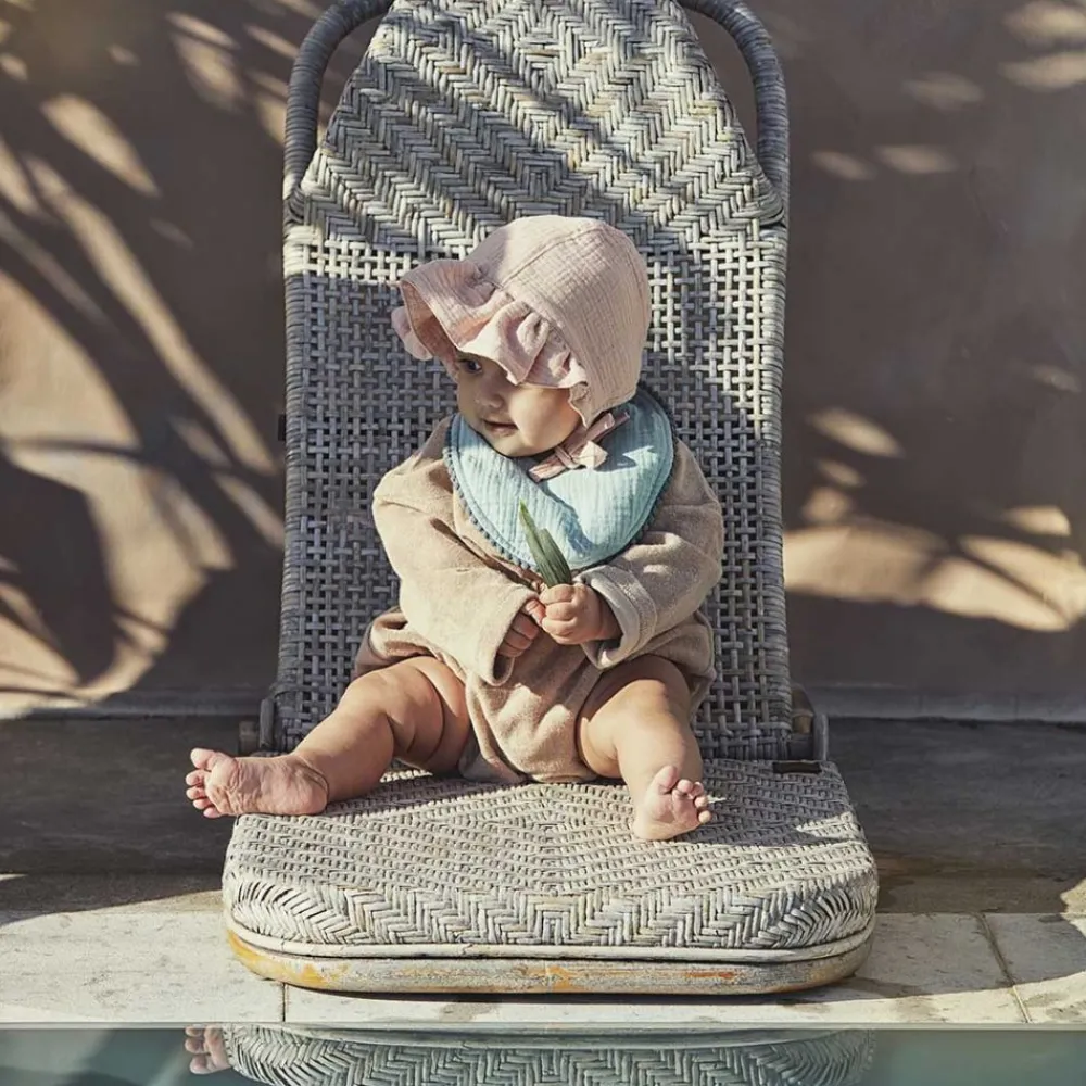 Denne klassisk formede babyluen er laget av myk bomull for god passform og pusteevne. Den har et glatt innerfôr som komfortabelt beskytter mot kald vind, mens et SPF 30-skjold gjør den til den perfekte solhatten til babyen.