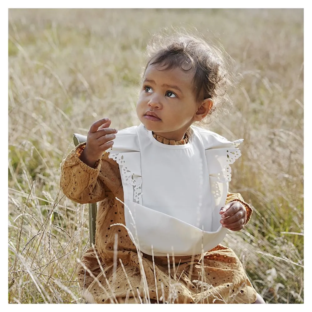 Elodies vakre smekker er en verdsatt hverdagsfavoritt blant mange småbarnsfamilier. Smekken er festet til nakken med en stor, myk borrelås som gir en justerbar størrelse og gjør den også egnet for eldre barn. Smekken er egnet for bruk fra ca 5 måneders alder.