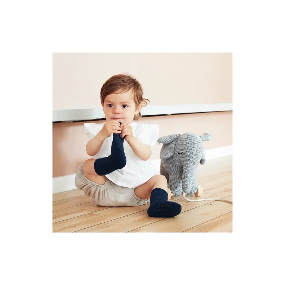 GoBabyGo sklisikre sokker forbedrer barnets motorikk, balanse og selvtillit. GoBabyGo sklisikre sokker er laget av tynn bambus med sklisikre såler og gummiputer på tærne som gir stabilitet på glatte overflater.