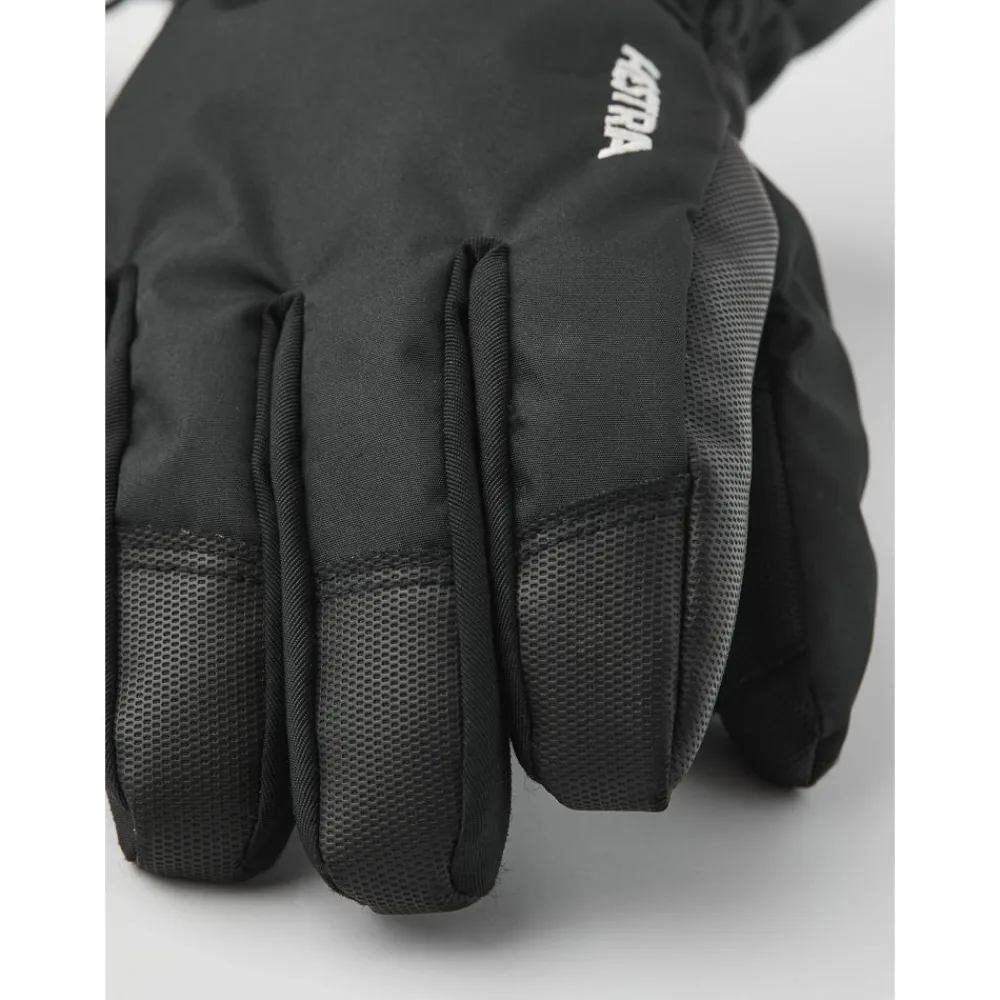 Med en praktisk, lengre mansjett som stenger ute snøen, og forsterkede fingertupper og håndflate i PU-belagt syntetisk materiale, får barnet både ekstra styrke og bedre grep på utstyr som staver, sleder og annet vinterutstyr. Foringen er laget av myk polyesterfleece med syntetisk isolasjon som gir behagelig varme, selv på de kaldeste dagene.