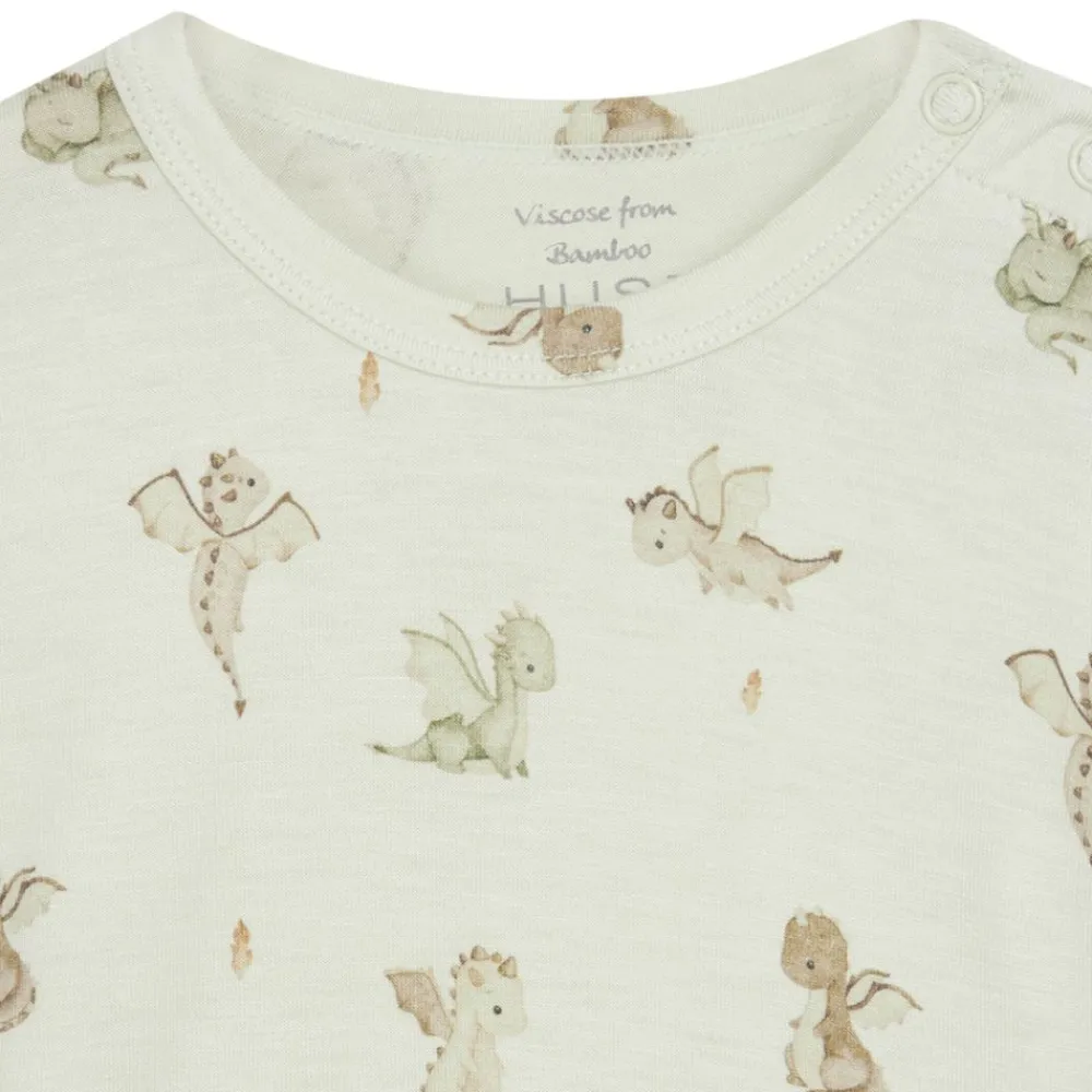 Langermet body i myk og tøyelig bambusviskose med dino print. Den praktiske kneppingen på venstre skulder og mellom bena gjør av- og påkledning enkel. Perfekt for sart hud, takket være pustende og temperaturregulerende bambusfiber.