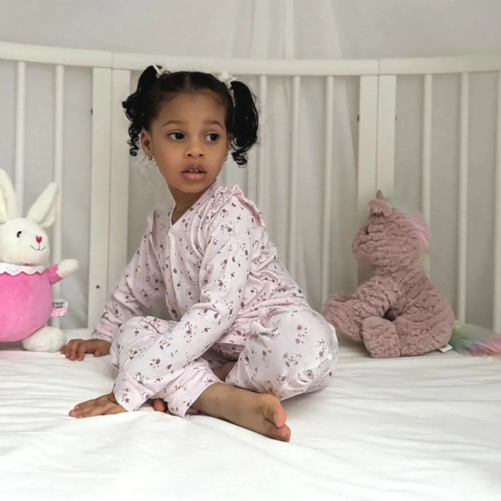 Denne nydelige heldressen i myk og stretchy bambusviskose er perfekt for små aktive barn. Med et delikat blomsterprint og praktisk tryllefot som kan brettes over for ekstra varme, blir den raskt en favoritt. Den asymmetriske kneppingen fra halsen til venstre fot gjør skifting enkelt og behagelig.