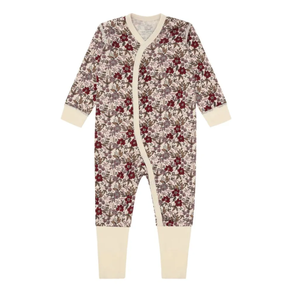 Gi barnet ditt den mykeste starten på dagen med denne nydelige heldressen fra Hust & Claire. «Manu Flor» kombinerer varmende ull på utsiden med silkemyk bambusviskose på innsiden – perfekt for sensitiv barnehud. Dressen har et delikat blomsterprint og lukkes praktisk med trykknapper ned det ene benet for enkel påkledning.