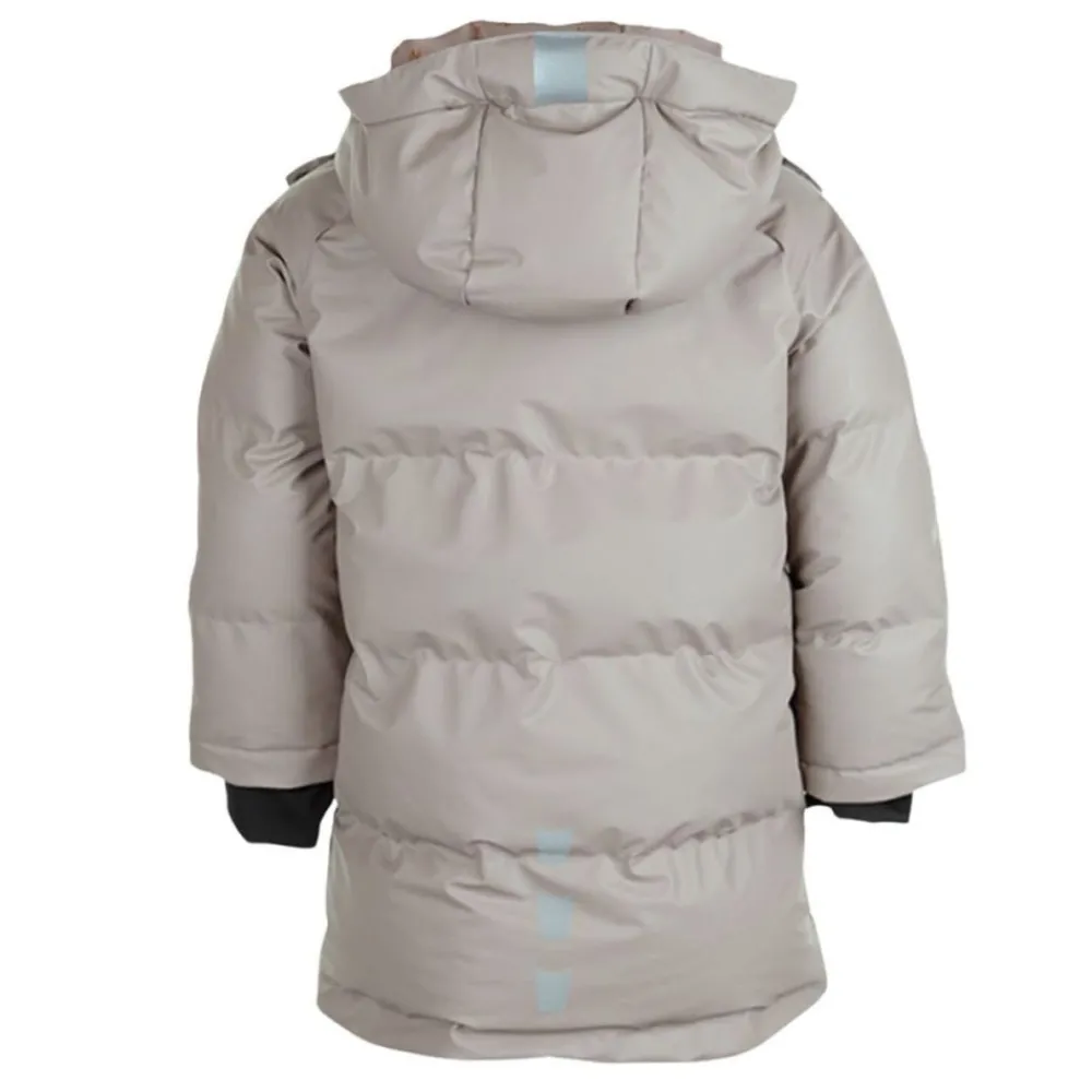 Den fantastisk populære bobleregnjakken er laget i PU-materiale med en vannsøyle på 10 000 mm. Denne er helt vanntett, og regnet preller av stoffet. Jakken har vattering i form av kunstfiber, slik at barnet kan holde seg varm og helt tørr når høsten setter inn for fullt. Det syntetiske foret holder på varmeevnen når det blir vått, i motsetning til dun. Jakken er slitesterk og kan vaskes som vanlig PU-regntøy uten å miste form og funksjon. Jakken har selvfølgelig også tapede og sveisede sømmer.