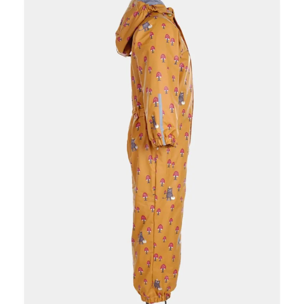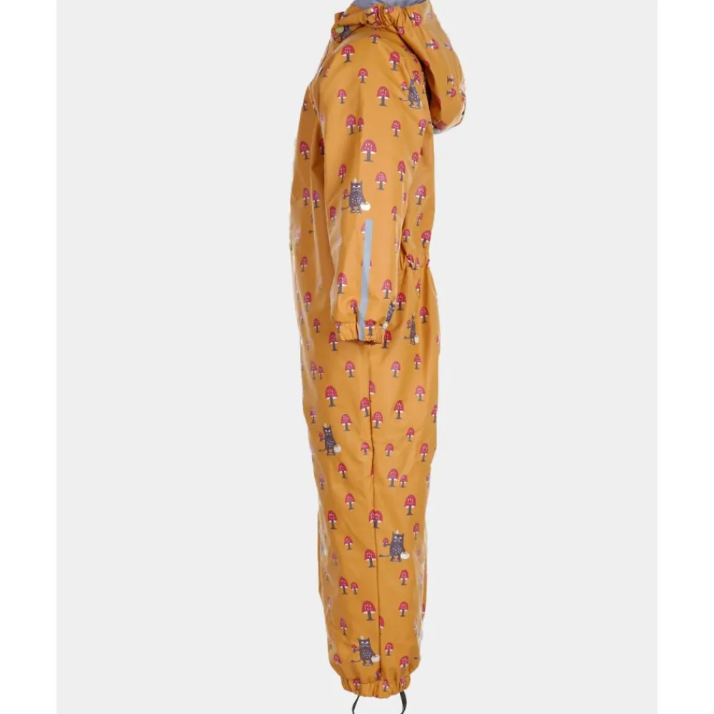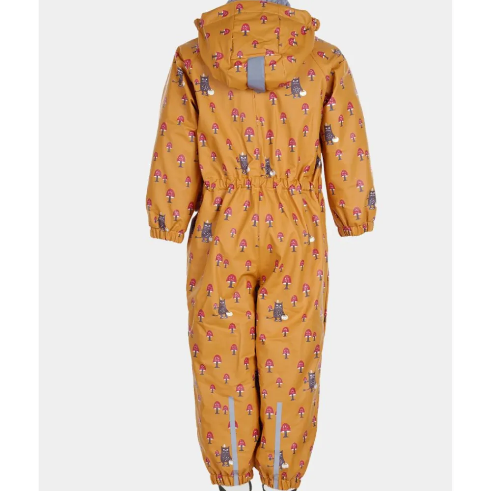 Dressen har vannstoppere i ermer og ben, refleksdetaljer for økt synlighet og slitesterke fotstropper som holder den godt på plass. Den avtakbare og justerbare sikkerhetshetten har også refleks, og vatteringen er ventilerende for optimal komfort. Den glatte innsiden gjør den enkel å ta av og på – perfekt for små eventyrere.