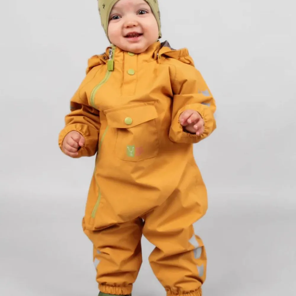 Kattnakken sin vindtette babydress frå kolleksjonen Tolvmeterskogen – 2025 er laga for dei aller minste, med fokus på både funksjon og komfort. Dressen er sydd i slitesterk, resirkulert Oxford polyester og har ein vannsøyle på 12 000 mm, noko som gjer den godt eigna til våte og vindfulle dagar. Tapede sømmer og pustande eigenskapar gjer at barnet held seg både tørt og behageleg.