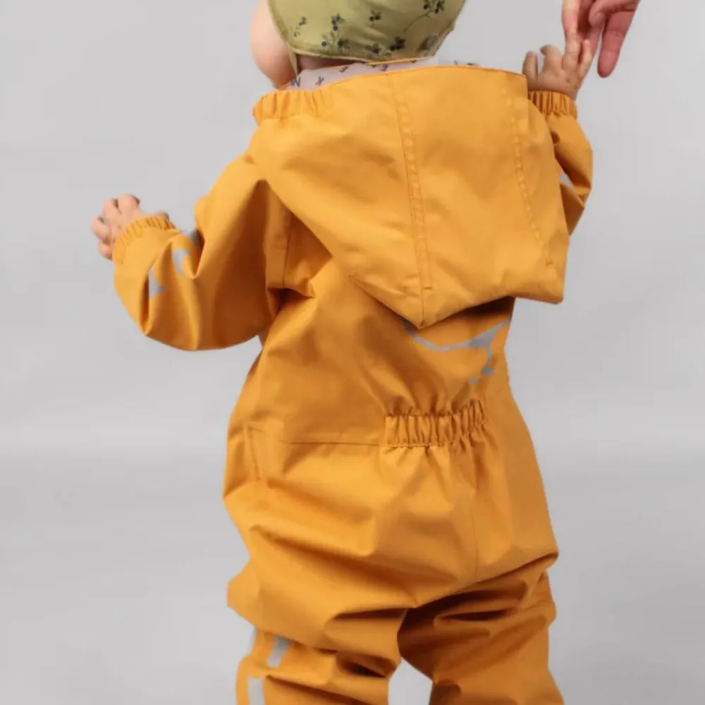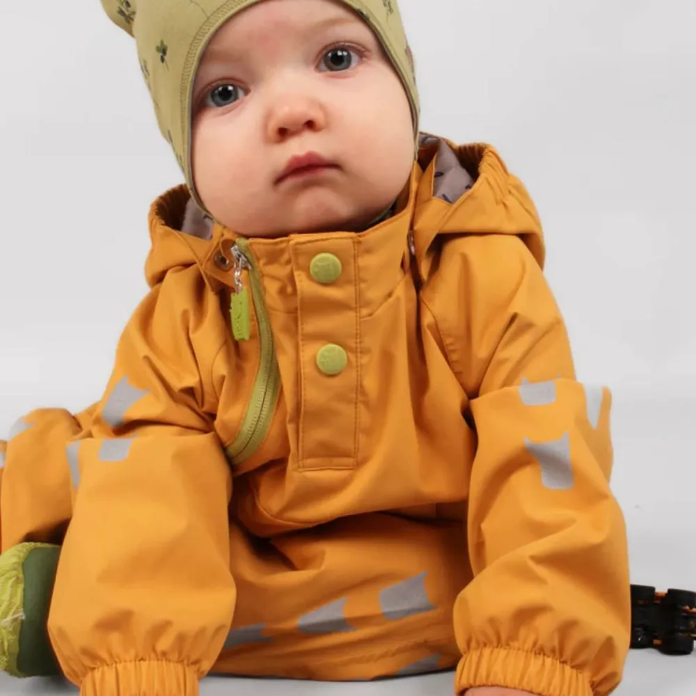 Vindtett babydress frå Kattnakken, laga i resirkulert Oxford polyester med 12 000 mm vannsøyle og tapede sømmer. Praktisk lomme, refleksdetaljar og avtagbar hette – perfekt for all slags vêr.