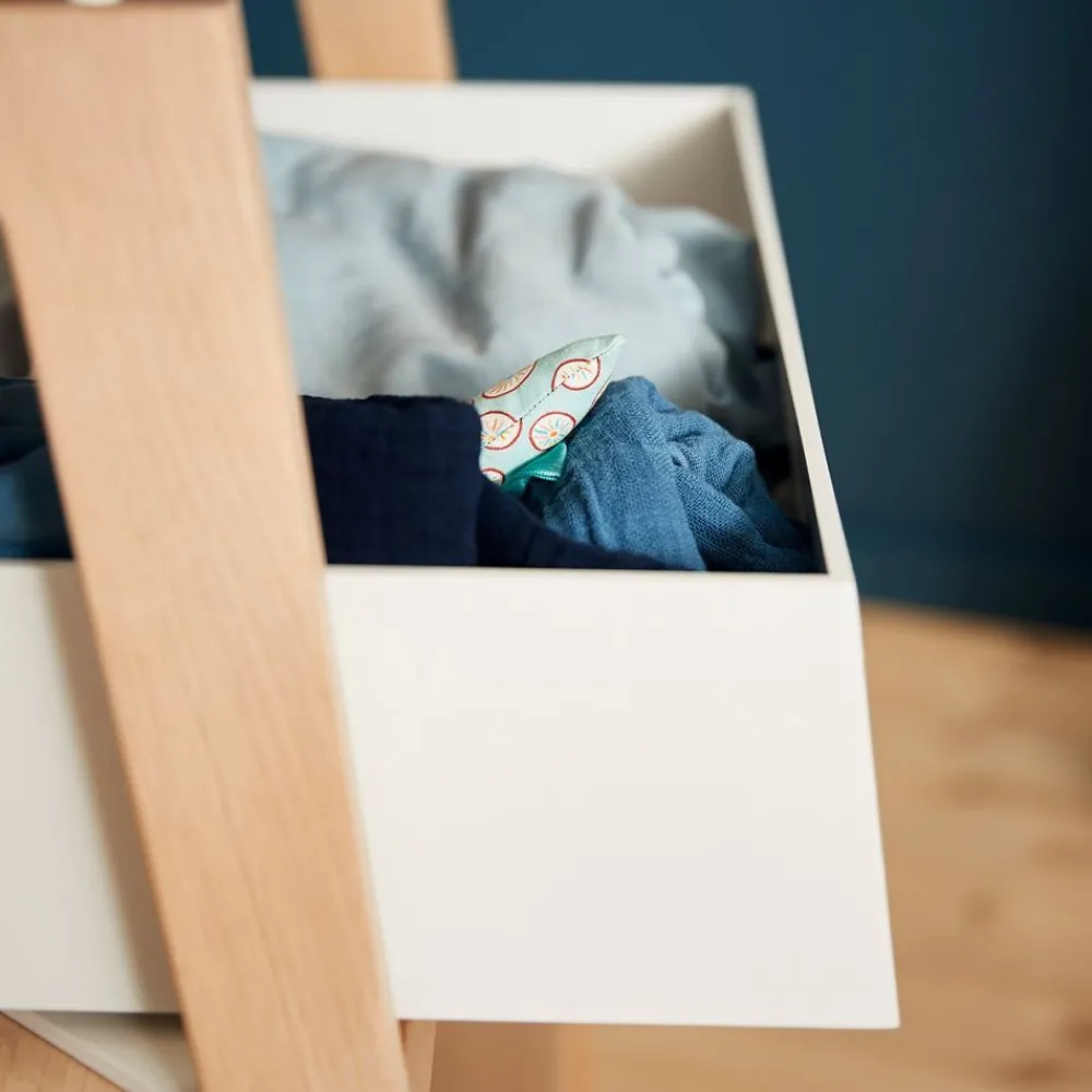 Designet med høye kanter på stellekanten gir trygghet til deg og ditt barn. Barnet skal alltid være under oppsyn på stellebordet. Det er derfor viktig at du har alt av stelle ting innenfor rekkevidde når du innreder stellebordet ditt. Linea by Leander® stellebord har to hyller hvor du kan oppbevare alt du har bruk for – fra bleier, tøy, babyolje, og vaskekluter.
