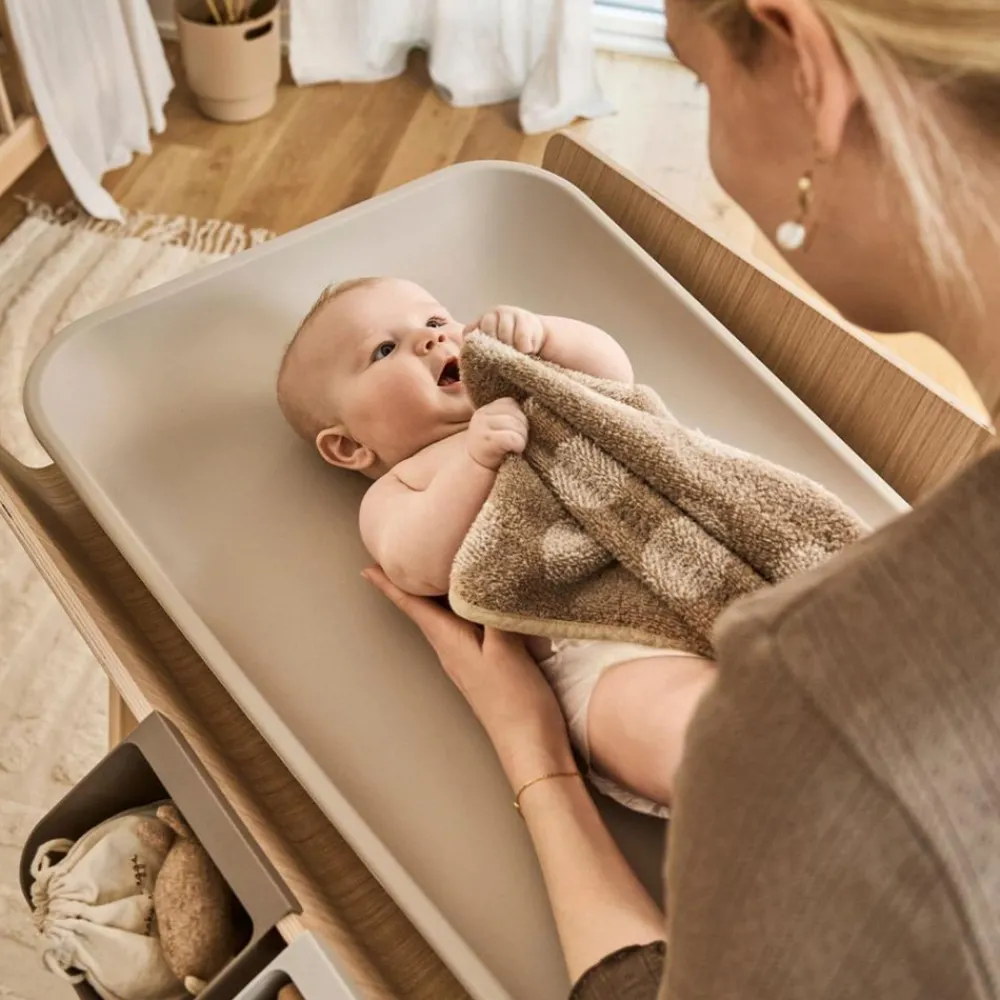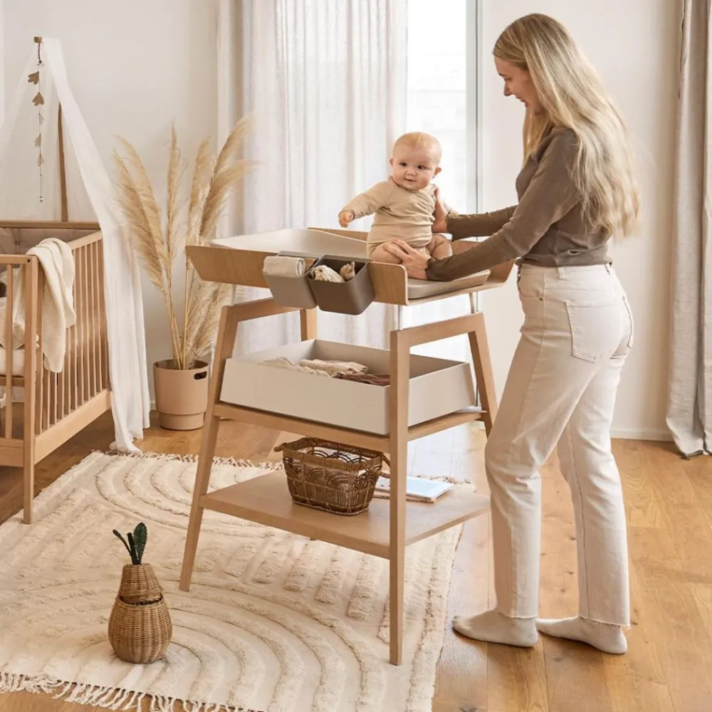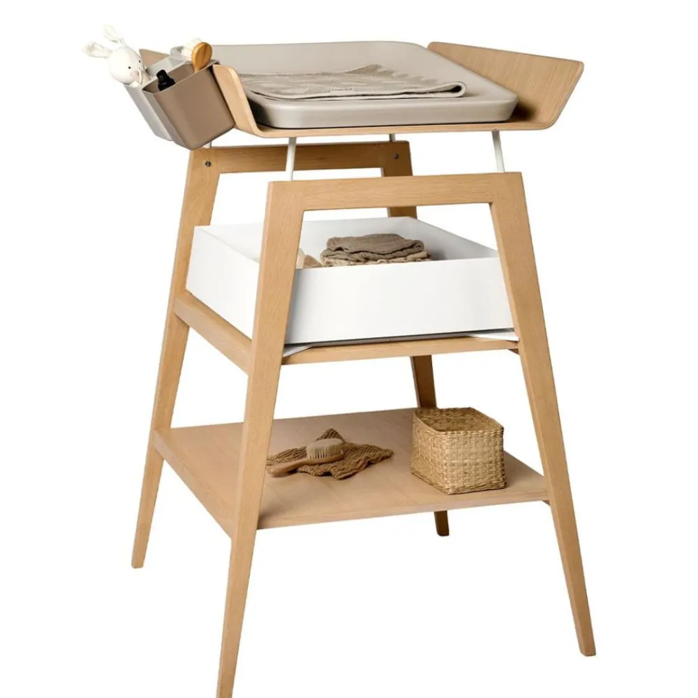 Allerede fra den første dag blir stellebordet en viktig plass i hjemmet for deg og din baby. Dere kommer til å bruke mange timer på å skifte bleie, vaske, nusse og hygge på stellebordet. Linea by Leander® stellebord er designet så det kan justeres i høyden og dermed gir både mor og far den optimale stelle høyden og kontakt med barnet.