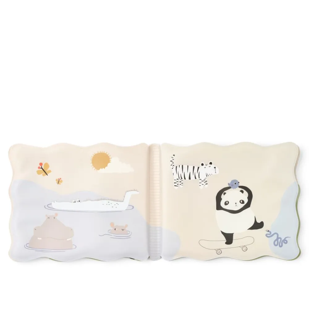Gjør badetiden ekstra morsom med den vanntette badeboken fra Liewood, designet for å underholde og engasjere babyer og småbarn mens de plasker rundt i badekaret. Bare senk boken i vann og barnet ditt vil oppdage skjulte skapninger og illustrasjoner som vises under de hvite sidene.