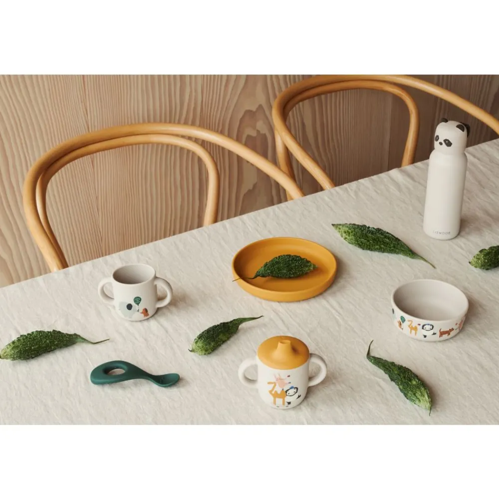 Vivi spisesettet fra Liewood er perfekt for små barn som skal lære å spise selv, da det er enkelt å holde og lett å rengjøre. Silikonmaterialet er mykt og behagelig å ta på, samtidig som det er holdbart og tåler tøff behandling. Vivi silikon spisesett inkluderer et praktisk sett med en kopp, bolle, tallerken og skje.