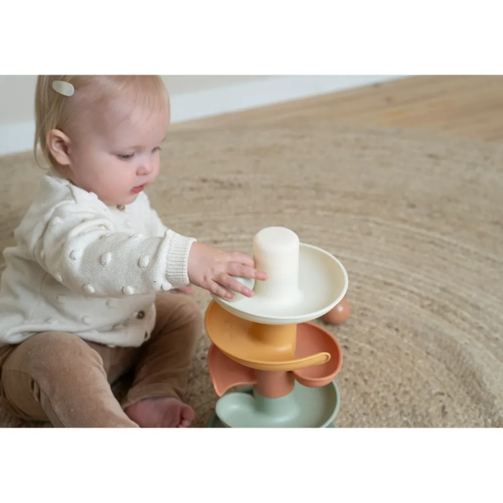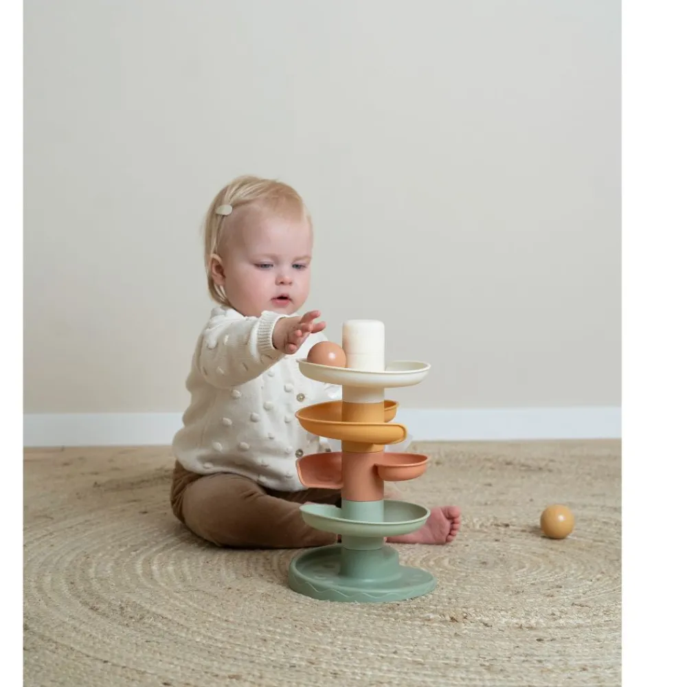 Spiraltårnet er ideelt for barn i alderen 6 måneder og oppover, da det stimulerer deres motoriske ferdigheter og kognitive utvikling. Ved å slippe ballene på det øverste laget, vil barnet oppleve spenningen ved å se dem slynge seg og rulle nedover spiralene. Dette vil hjelpe dem med å forstå årsak og virkning, samt forbedre deres hånd-øye-koordinasjon.