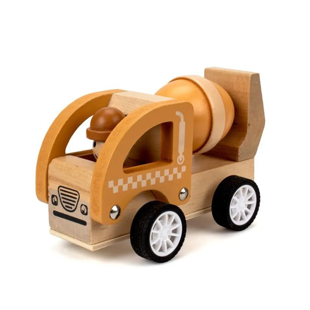 Sementbil med gummihjul og tilbaketrekksfunksjon. Morsom leke for barnet. Bilen er laget i tre og har høy kvalitet.