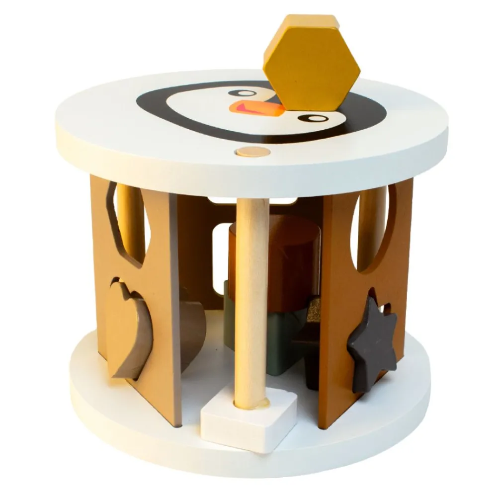 Fin og dekorativ putteboks i FSC-sertifisert tre. Det er 6 forskjellige figurer med matchende hull, som aktiverer barnet og stimulerer både logisk tenkning og finmotorikk, når klossene matches til de riktige hullene. De naturlige fargene virker beroligende og designet er med på å styrke barnets motorikk.