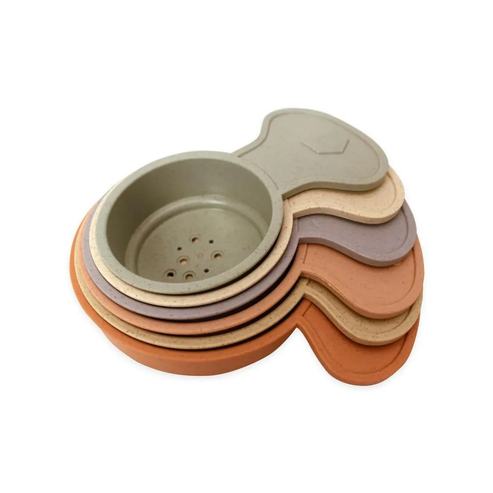 Stablekopper hvor hver kopp har et lite håndtak og forskjellige hull for vannet å renne ut. Materialet er 100% nedbrytbart