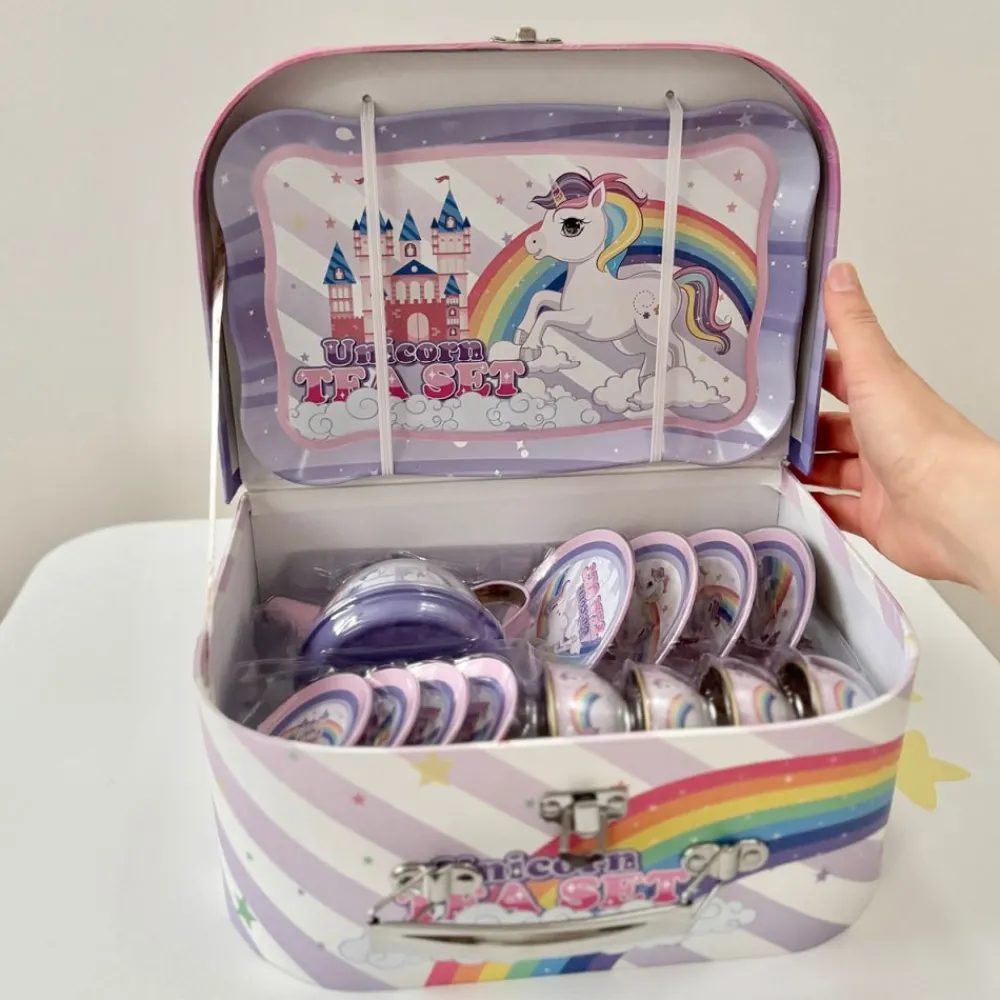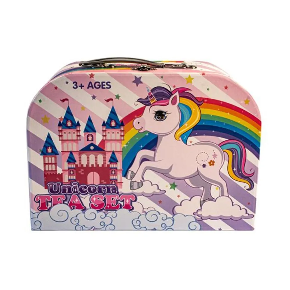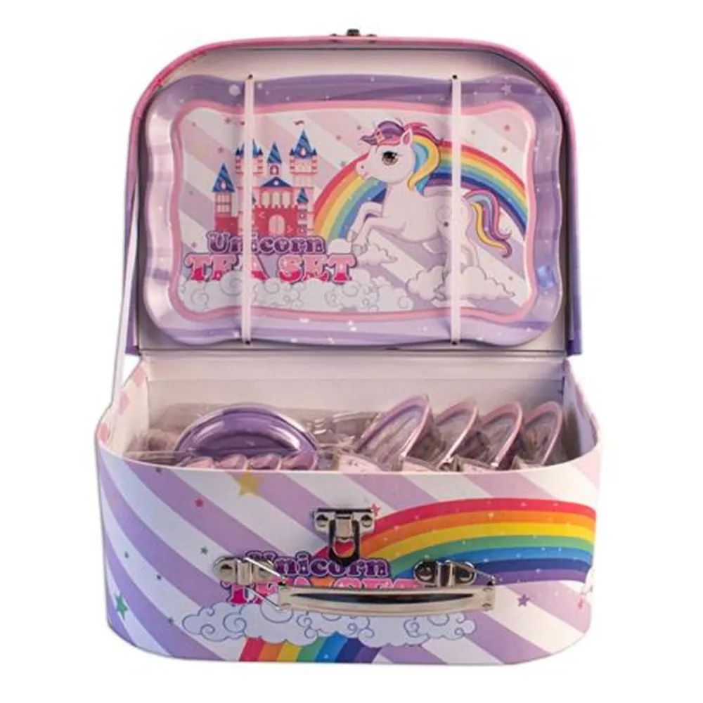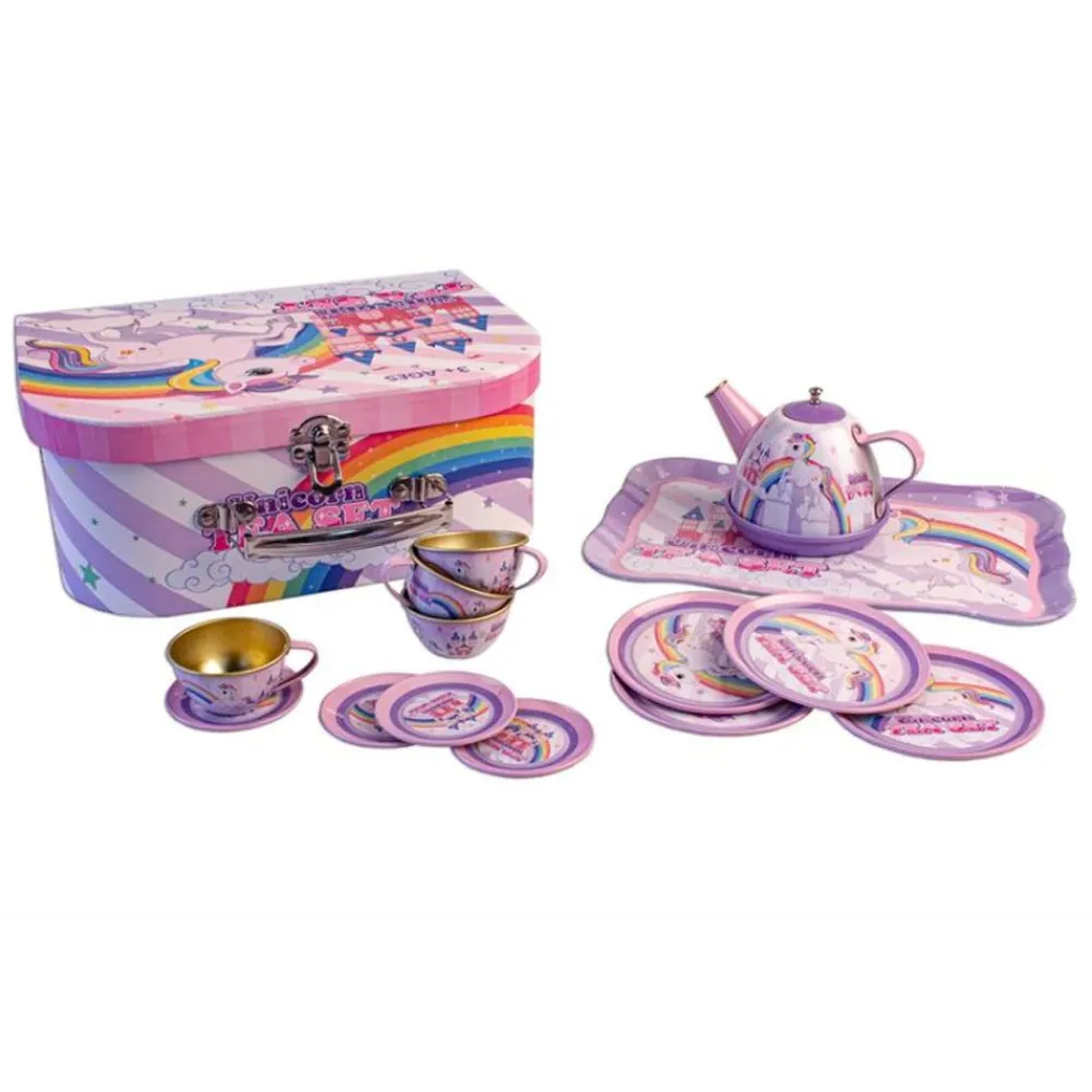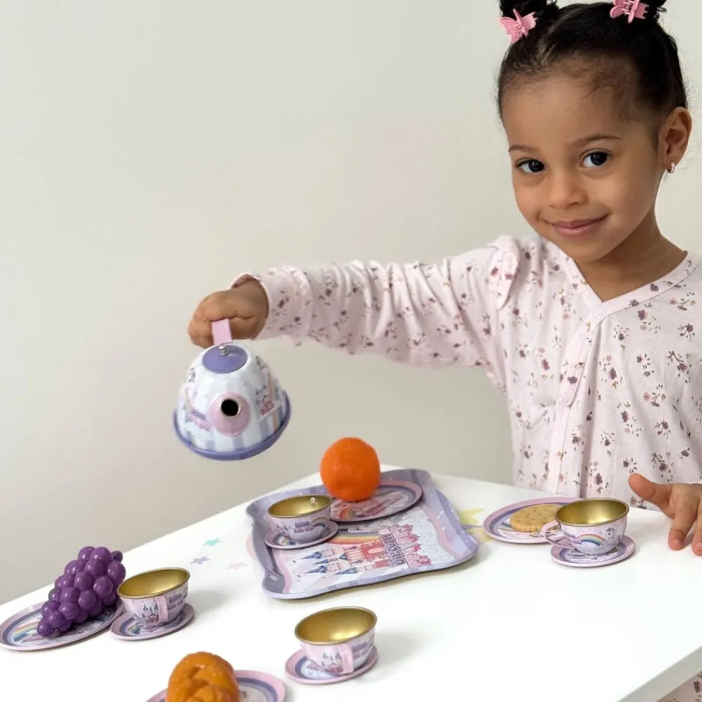 Et lekkert tesett i tinn er perfekt for barn som elsker å ha teselskap med familie, venner, dukker og bamser. Med sitt delikate design og vakre blomstermønster vil det skape en hyggelig stemning under te-selskapet. Det kommer pakket i en matchende koffert, og er til stor glede for alle små vertinner og verter.