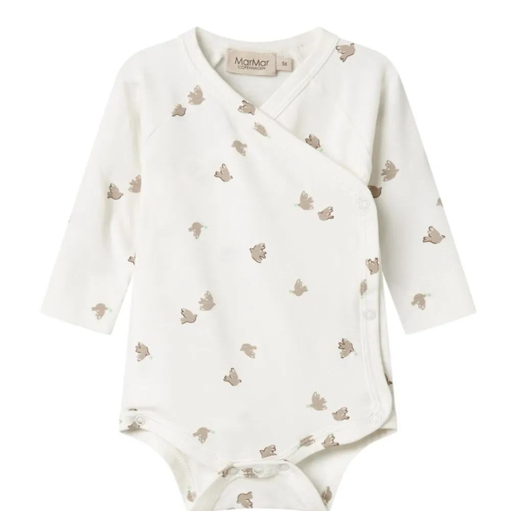 En langermet omslagsbody laget i en utrolig myk og stretchy kvalitet som gir maksimal komfort for babyen din. Det praktiske omslagsdesignet med trykknapper på siden gjør påkledning og bleieskiftet enkelt.