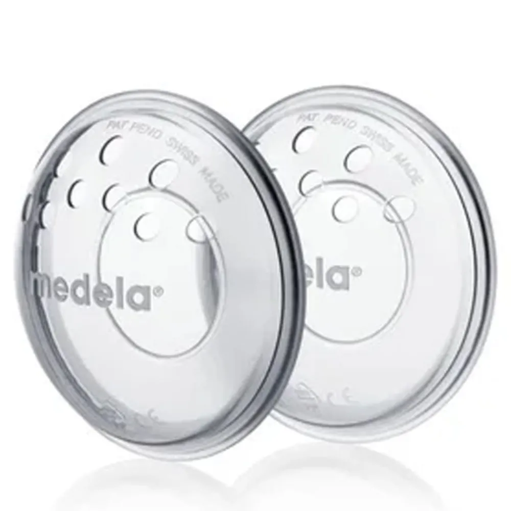 Hvis du har såre eller sprukne brystvorter, kan Medela brystskjold beskytte dem ved å hindre friksjon fra klærne, slik at huden tilheles. En ettersittende bakside i myk silikon føles behagelig mot følsom huden.