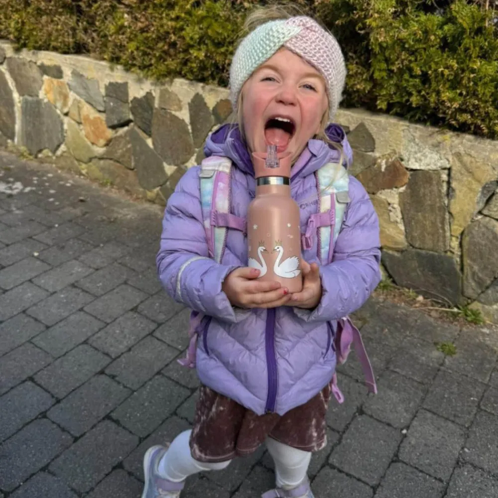 Denne lette og slitesterke aluminiumsflasken er designet for små eventyrere. Den holder på temepraturen og har en praktisk tut. Flasken har et lekkasjesikkert lokk som forhindrer søl i sekken. Perfekt til skolen, barnehagen eller turer.