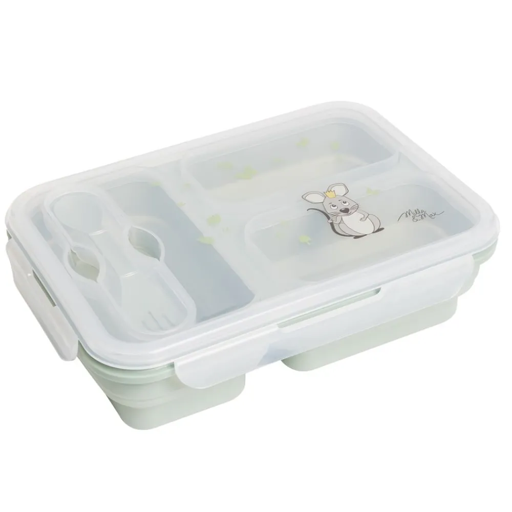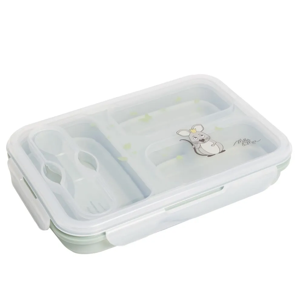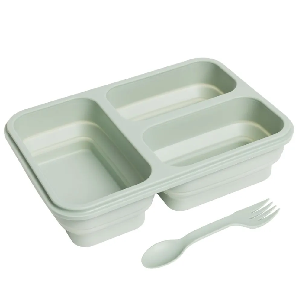 Gjør matpakkene enklere med denne praktiske silikonmatboksen. Den tar minimalt med plass, er lett å bære og har tre separate rom som holder maten fersk og adskilt. Det lekkasjesikre designet sikrer at du kan pakke både våte og tørre ingredienser uten bekymring. Pluss – et eget bestikkrom med gaffel som gjør måltidene enda mer praktiske. Perfekt for jobb, skole eller utflukter.