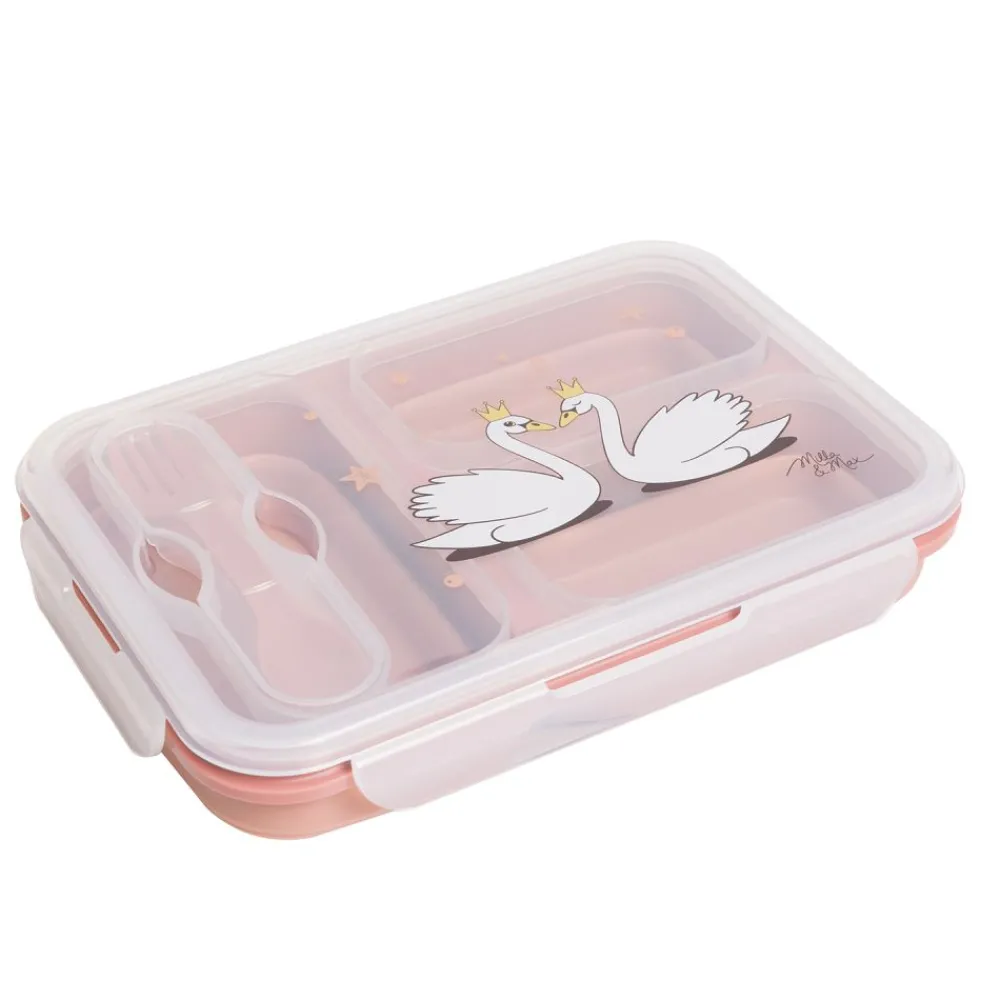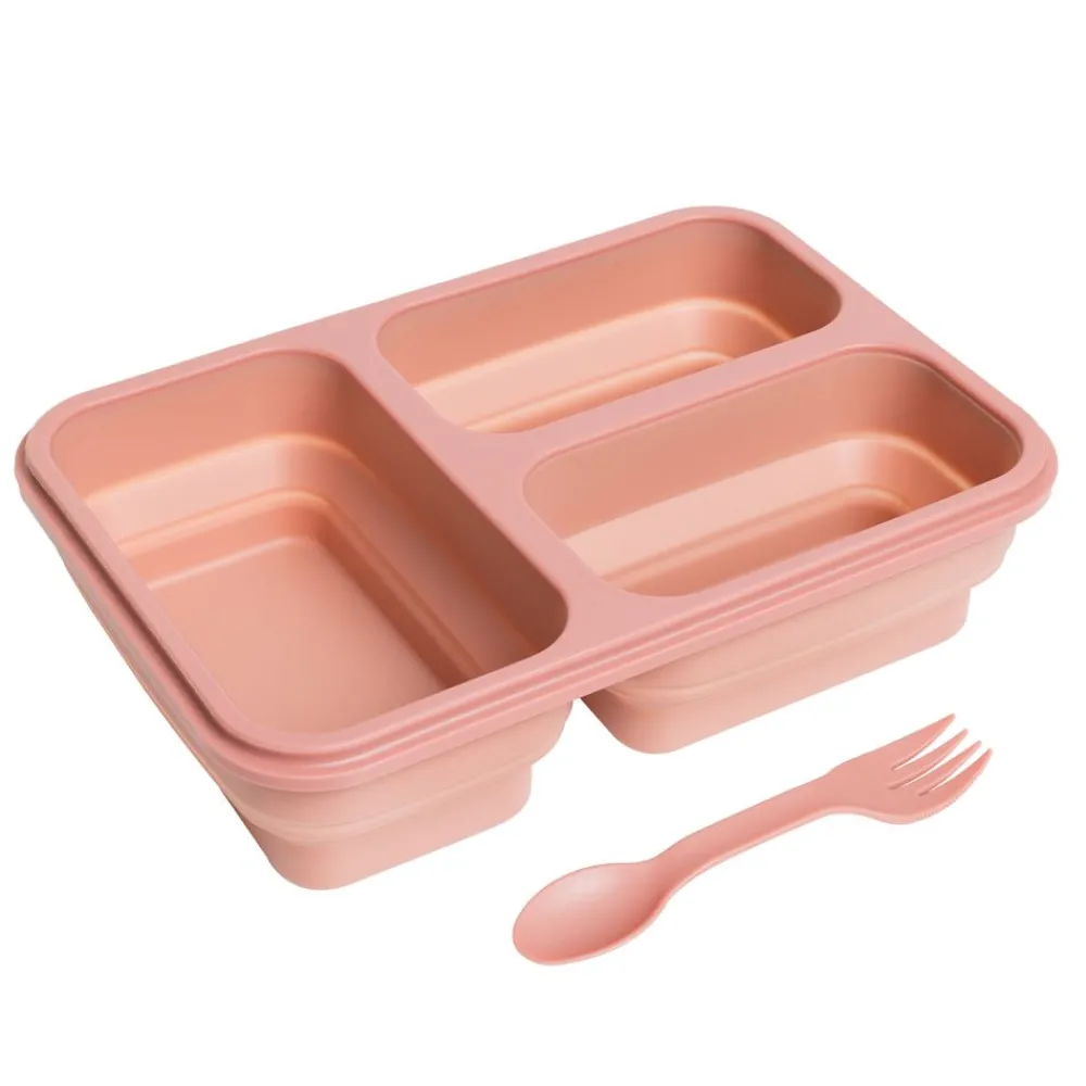 Gjør matpakkene enklere med denne praktiske silikonmatboksen. Den tar minimalt med plass, er lett å bære og har tre separate rom som holder maten fersk og adskilt. Det lekkasjesikre designet sikrer at du kan pakke både våte og tørre ingredienser uten bekymring. Pluss – et eget bestikkrom med gaffel som gjør måltidene enda mer praktiske. Perfekt for jobb, skole eller utflukter.