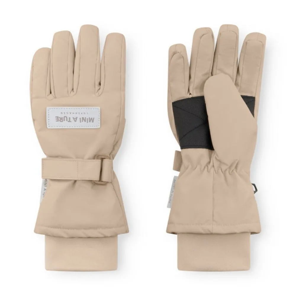 Klassiske MINI A TURE-hansker laget av resirkulert nylon med Thinsulate®-fôr. Vind- og vanntette, pustende og varme nok for en veldig kald vinter. Hanskene har strikk rundt håndleddet samt øverst som holder regn og snø ute. Borrelåsstroppen kan festes til vårt klassiske yttertøy slik at hanskene ikke blir borte.