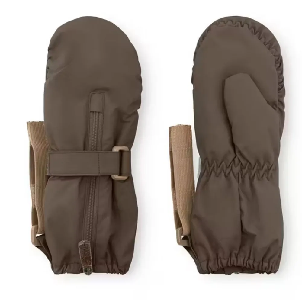 Klassiske MINI A TURE-votter laget av resirkulert nylon med Thinsulate®-fôr. Vind- og vanntette, pustende og varme nok for en veldig kald vinter. Vottene har glidelås foran som gjør dem enkle å ta av og på, og gjør dem brukbare utenpå jakkeermet. Strikk rundt håndleddet og øverst sikrer god passform og holder regn og snø ute. Borrelåsstroppen kan festes til D-løkker på klassiske MINI A TURE-jakker og -dresser, slik at vottene ikke blir borte.