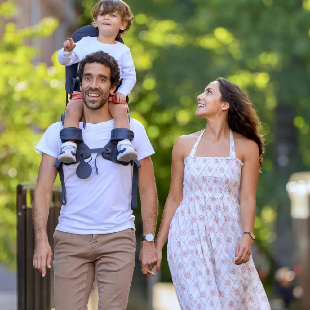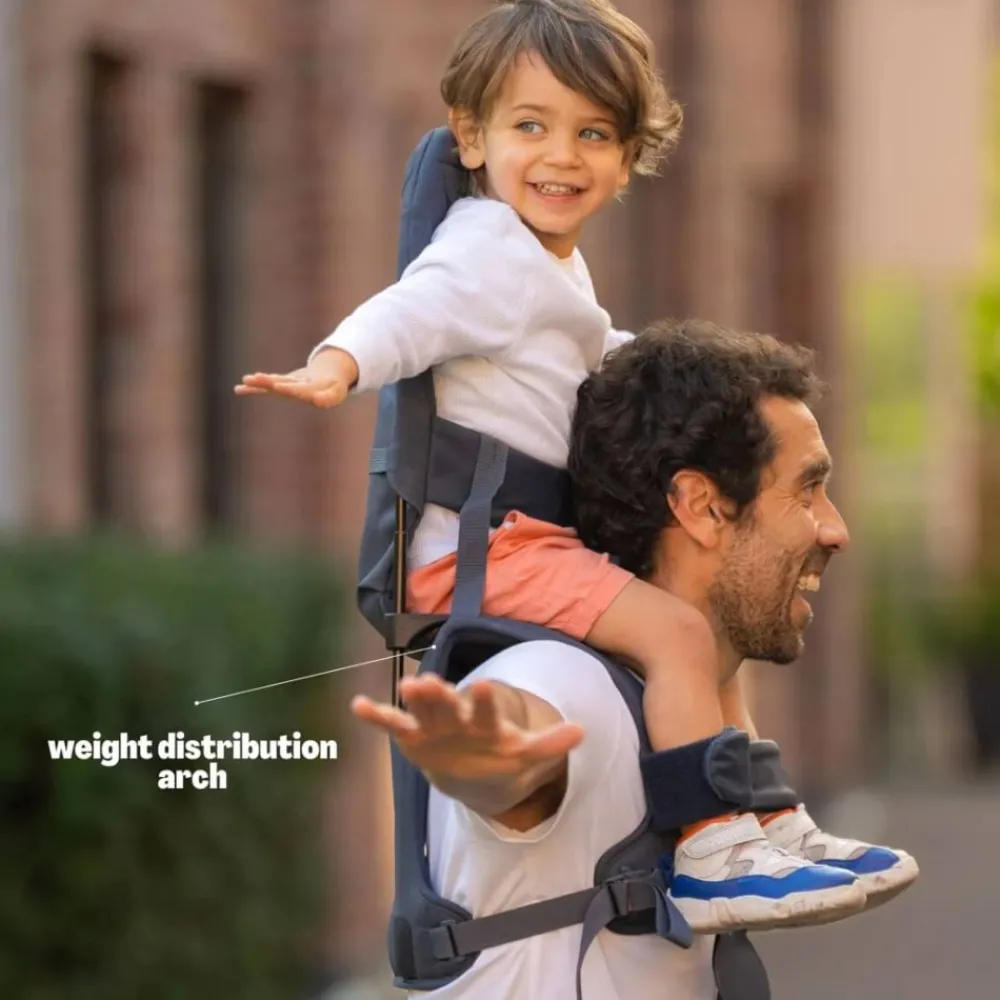Som foreldre kjenner vi spenningen ved å se barnets ansikt lyse opp av glede når det løftes opp på skuldrene. Komfort for foreldrene er gitt ved å plassere barnet på en spesialdesignet bue, og avlaster nakken og skuldrene. Vekten til barnet er jevnt fordelt gjennom bærerens kropp, noe som muliggjør lengre turer i både komfort og stil, med glade barn!