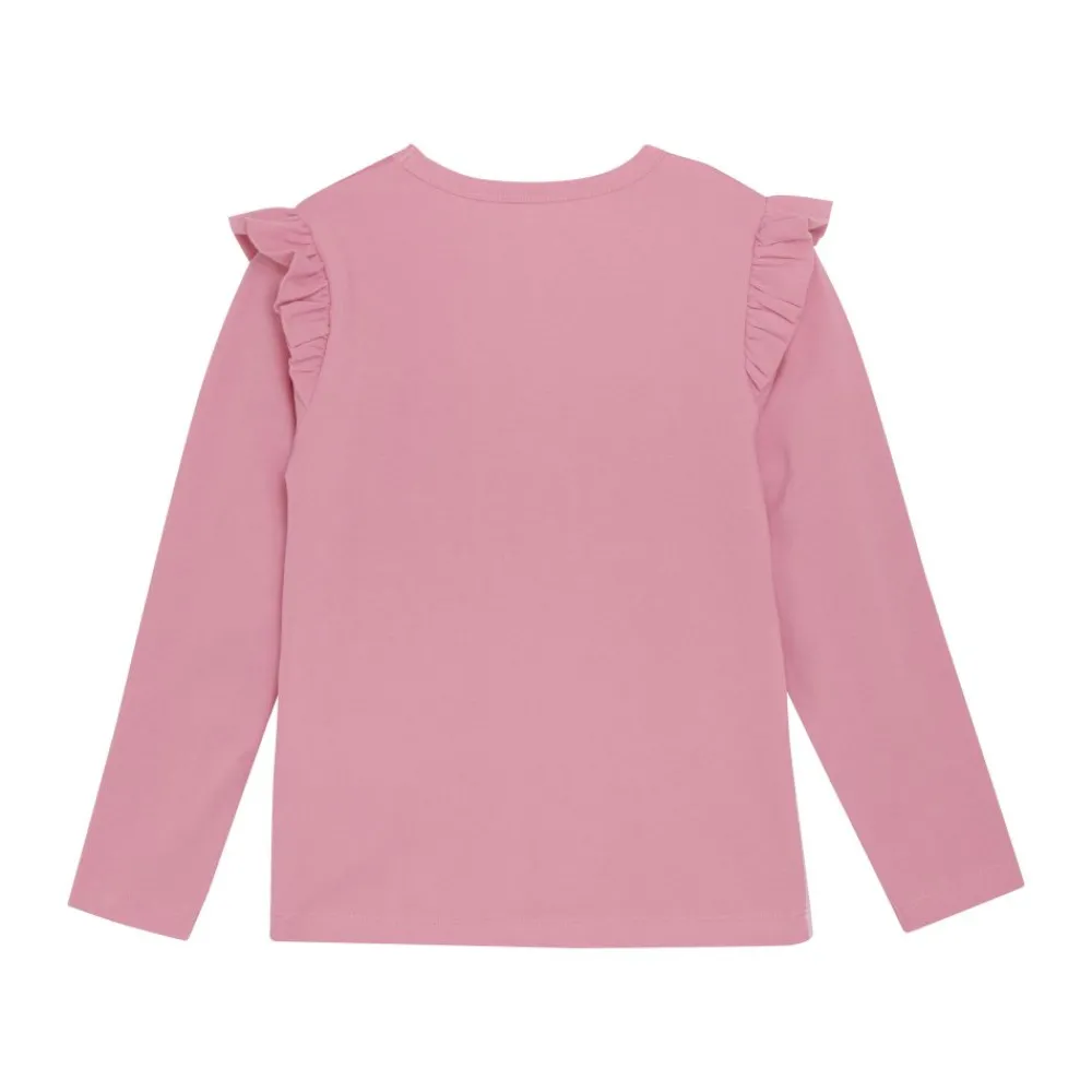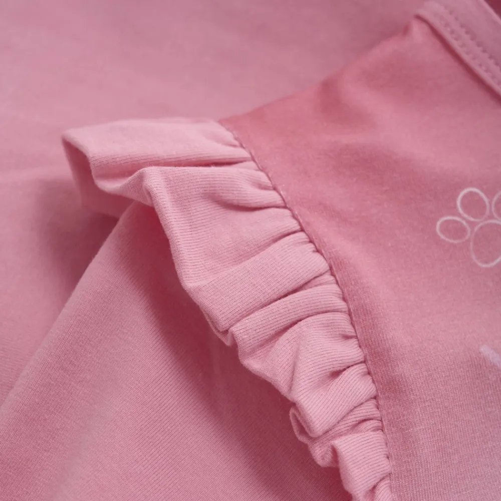 Langermet genser med Paw Patrol-trykk, laget av single jersey i bomullsblanding. Genseren har volanger på skulderen, noe som gir en fin detalj. Stort trykk med Everest, Skye, Marshall og «Ready for adventure» foran. Et fin genser til de små som elsker å utforske verden med favorittkarakterene sine.
