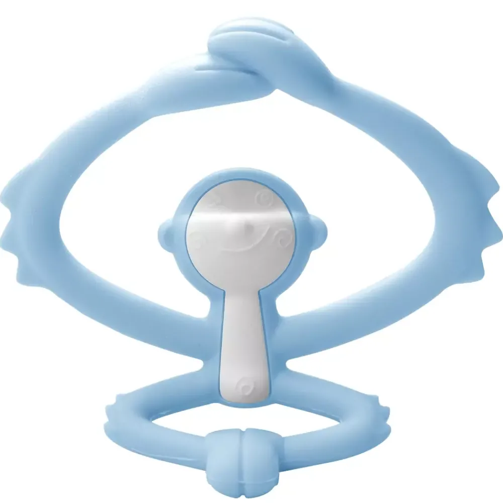 Mombella Hugging Monkey er en søt og trygg biteleke som også kan gripe rundt flasker og andre leker. Designet for babyer fra 5 måneder og oppover. Kløe i gommene vil være et fjernt minne på kort tid!