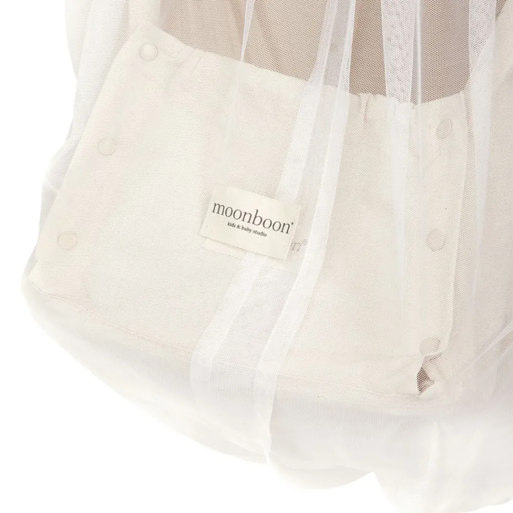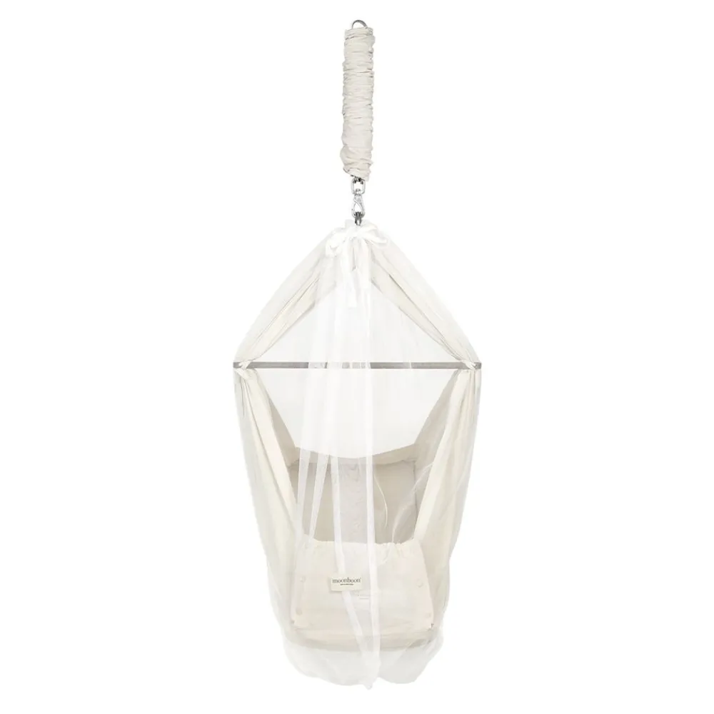 Moonboon Myggnett med snøring beskytter babyen din mot fluer og mygg i de varmere månedene, og gir maksimal luftgjennomstrømning og komfort. Dette pustende beskyttelseslaget er lett å montere, og er laget av 100 % polyester, med en overlappende åpning for rask tilgang til hengevuggen og babyen din.