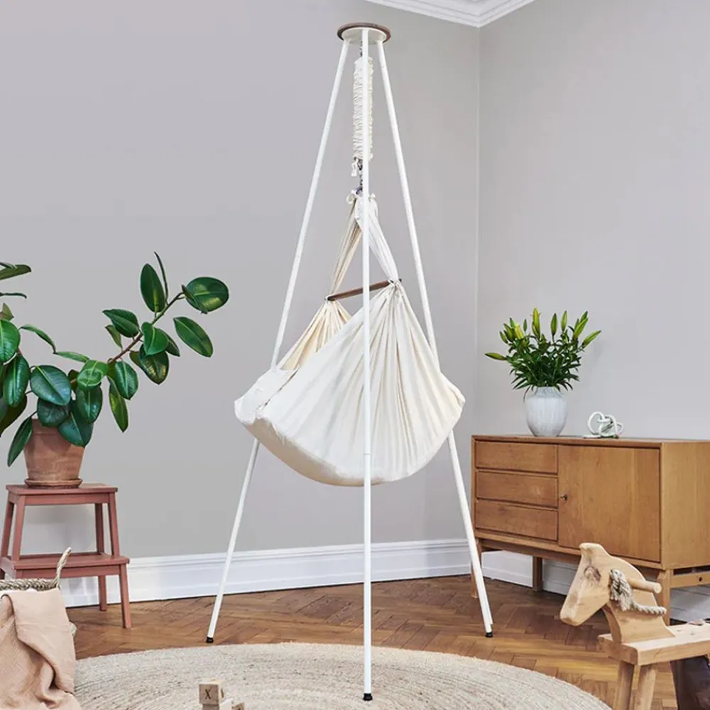 Praktisk, enkelt og bærbart. Hva mer kan man ønske seg? Stativet til hengevuggen er det eneste stativet på markedet som spesielt utviklet for både motor og hengevugge. Med sitt rene skandinaviske design er stativet et stilig møbelelement i hjemmet ditt.