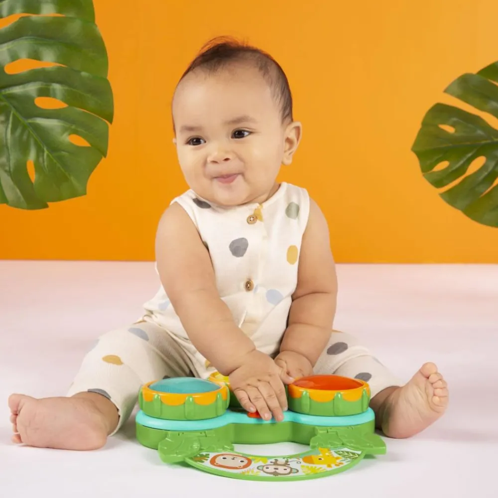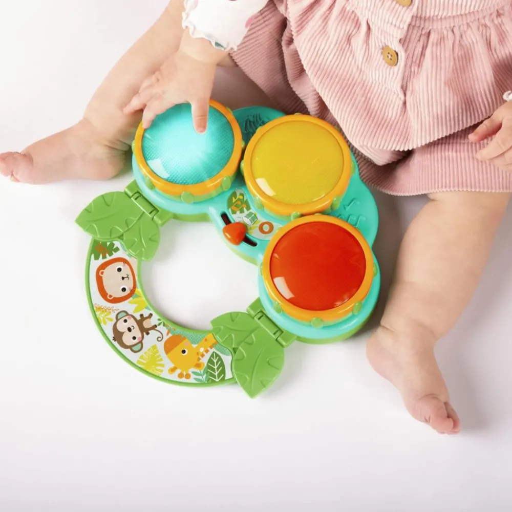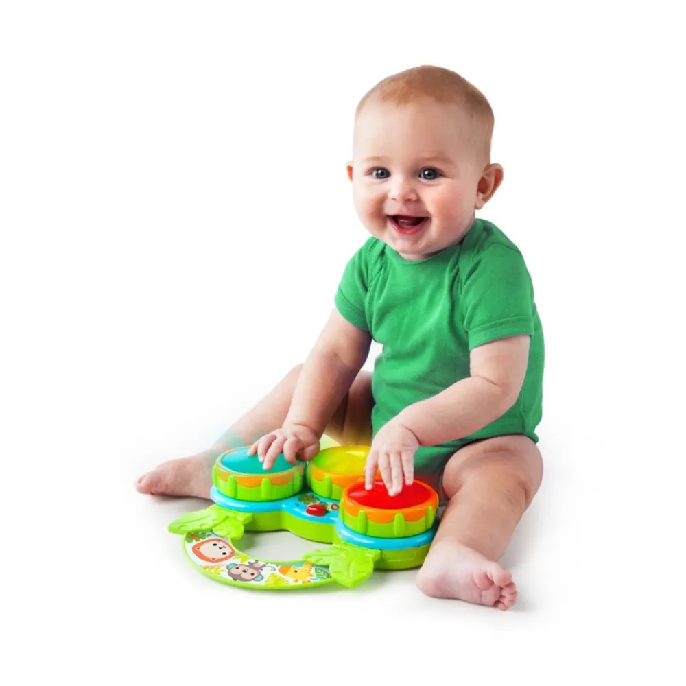 Med dette musikalske leketøyet Safari Beats™ fra Bright Starts, vil det bli mange timer med lek og moro. Hvert trykk på en fargerik knapp vil få den lille til å sprette i takt. Bytt den om fra trommemodus til melodimodus og oppdag en helt ny safari av lyder. Det gripevennlige håndtaket gjør det lett for barnet å frakte med seg overalt.