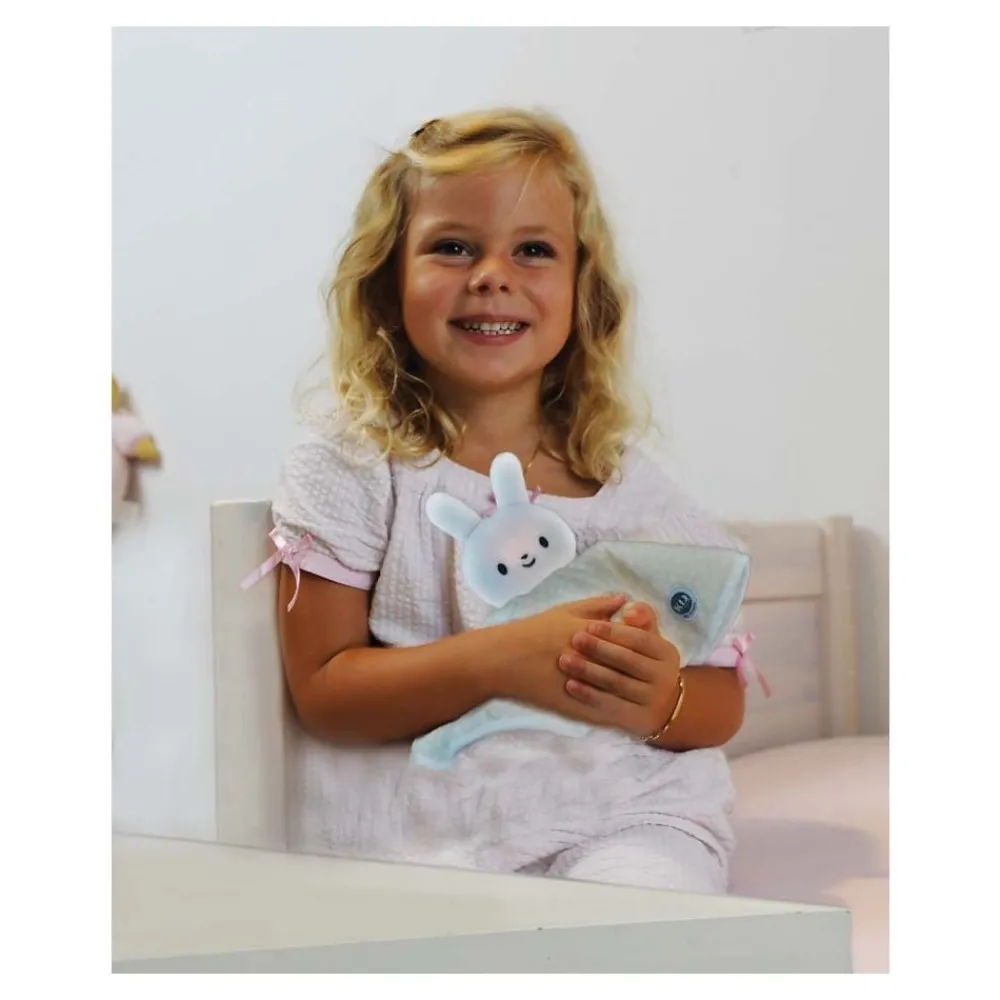 My Dream fra Kid`Sleep er både en herlig kosebamse, en beroligende nattlampe og en indikator for når barnet skal stå opp! Trykk på hodet og se om det lyser blått (sove tid) eller gult, tid for å stå opp, foreldrene setter sove- og vekketid.